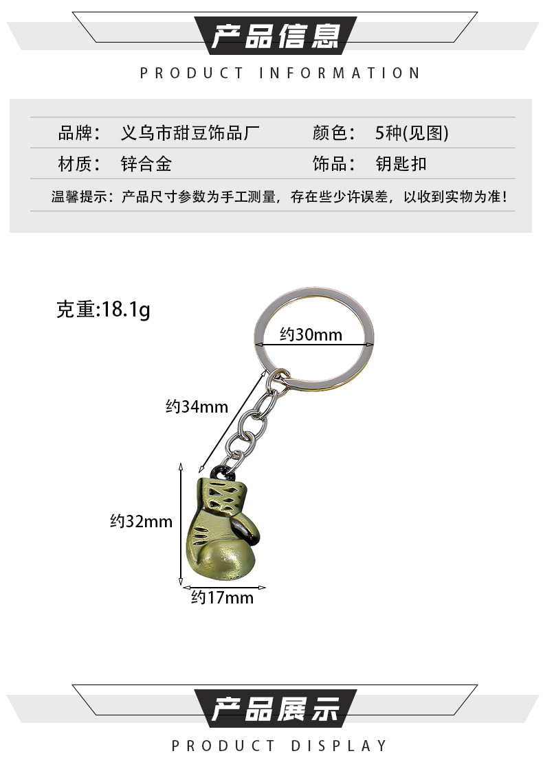 小拳套钥匙扣PVC挂件迷你拳击手套散打搏击拳迷用品小配件饰品