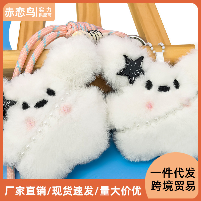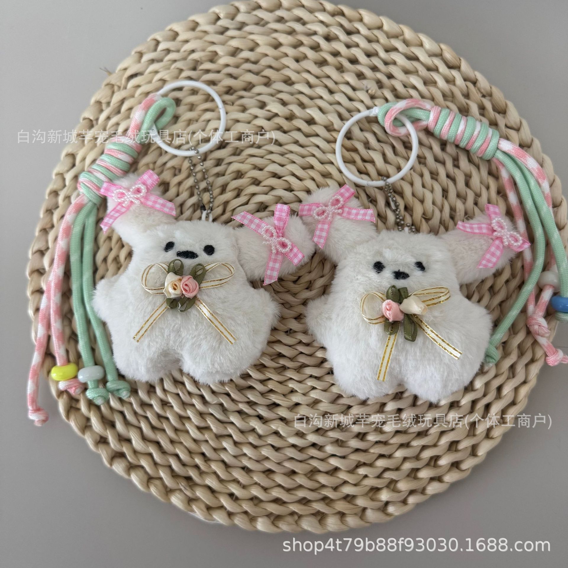 吱吱叫可爱卡通毛绒小白狗小白兔飞行狗挂饰珠链钥匙扣玩偶公仔挂