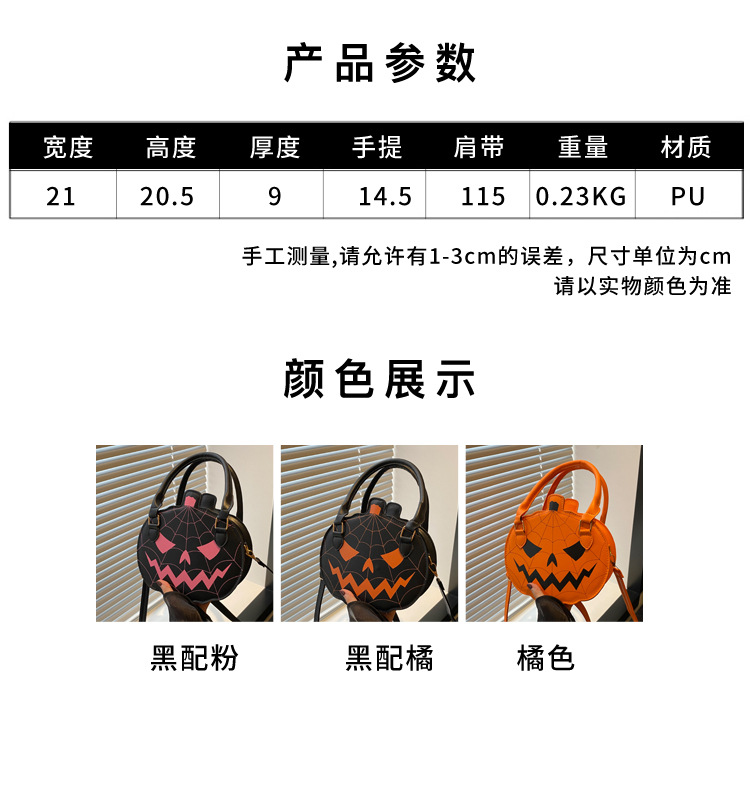 ハロウィンバッグ 2025 新しいコントラストカラーのレディースバッグシンプルなシングルショルダーラウンドバッグ面白いカボチャバッグクロスボーダーレディースバッグ