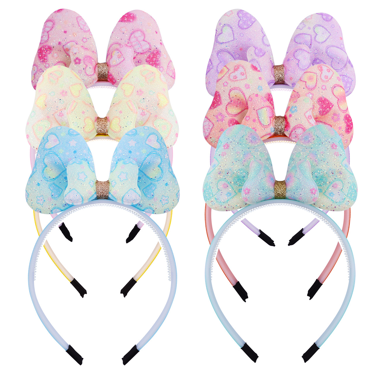 欧美女生可爱搭配闪亮彩色爱心头箍儿童节日派对甜美蝴蝶结发箍