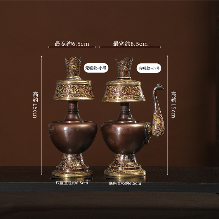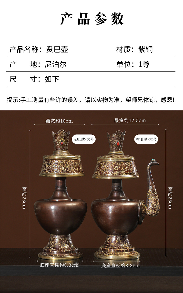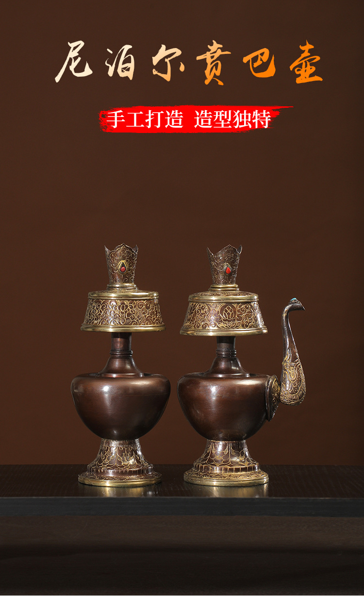 金供品噴巴壺尼泊紫銅彫刻水筒チベット文巴瓶事業宝瓶壺