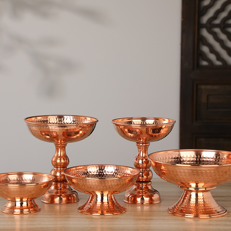 高い足の皿の果物の皿の銅の家庭用の赤い銅の功盤の果物の皿の上で用品の客間の果物の皿を提供します。