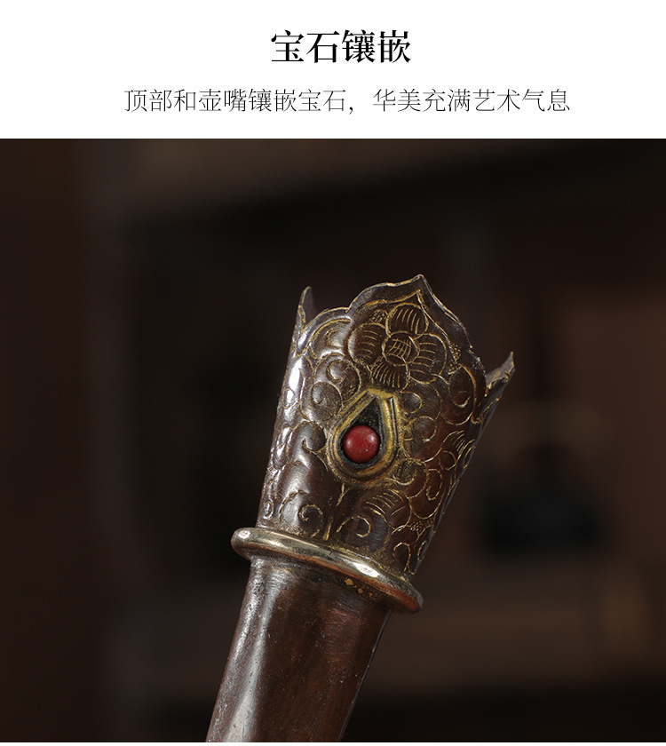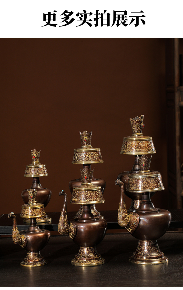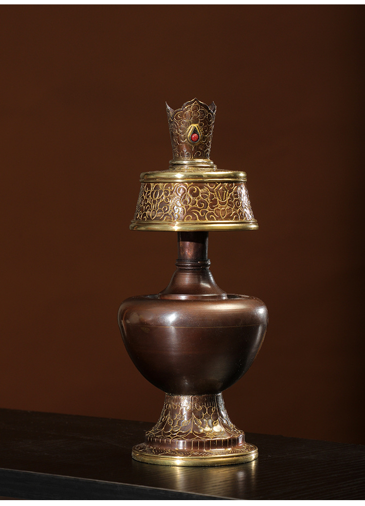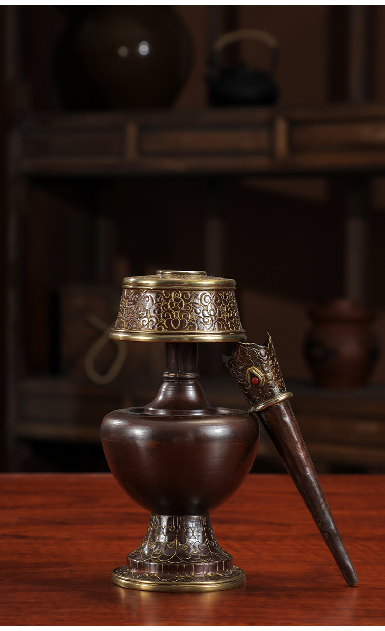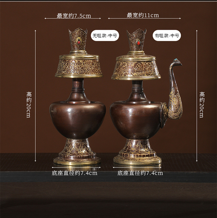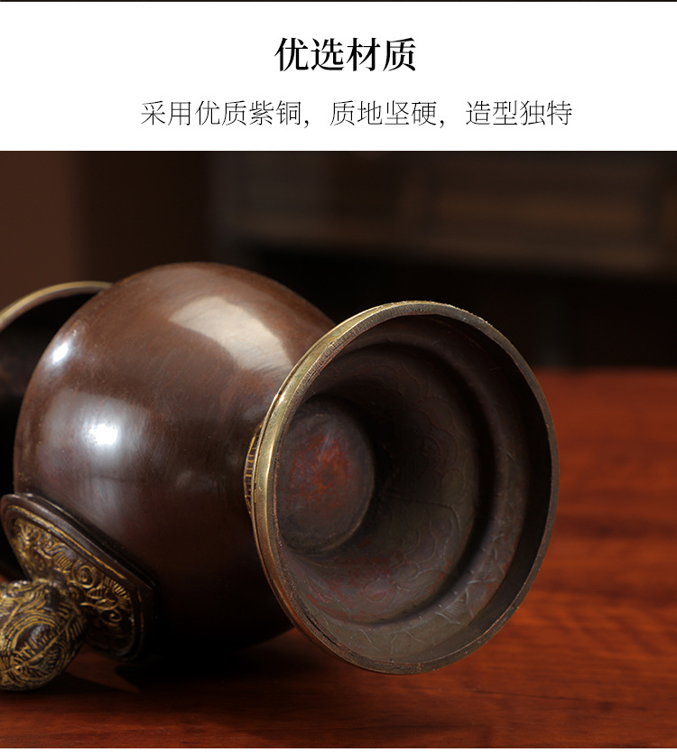 チベット式紫銅噴巴壺密宗ネパール仏具浄水筒手作り格桑花銅金奔巴壺に口があります。