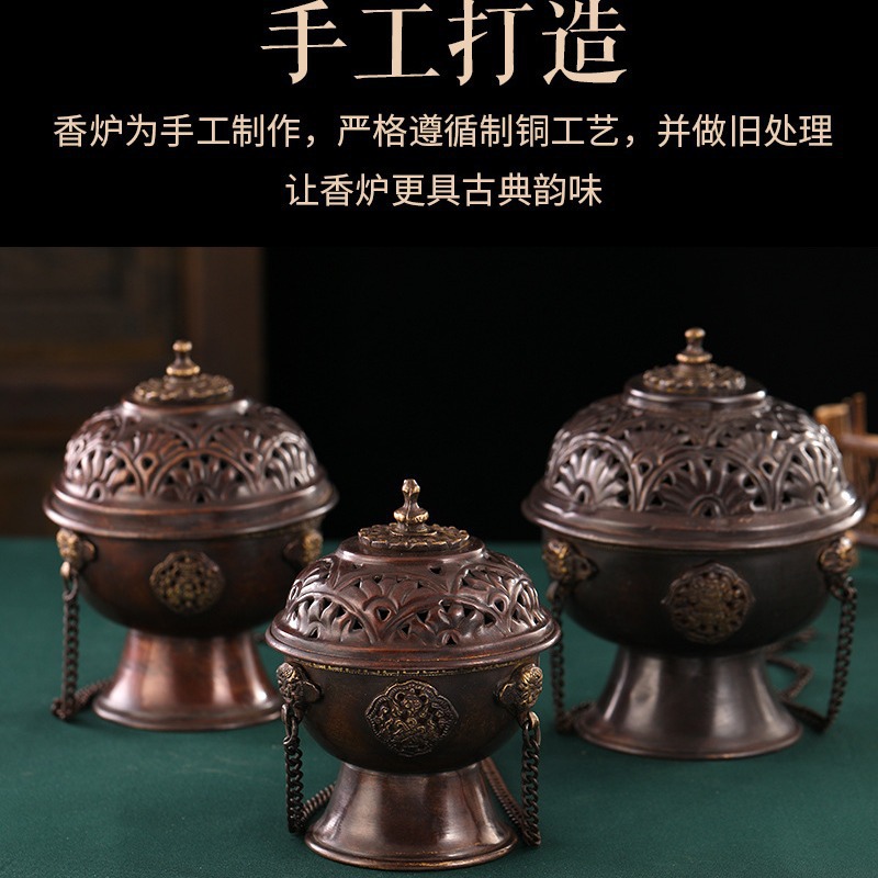 銅吊り下げ香炉ネパール輸入手作り彫刻レトロ銅盤香炉吊り式銅製薫香炉