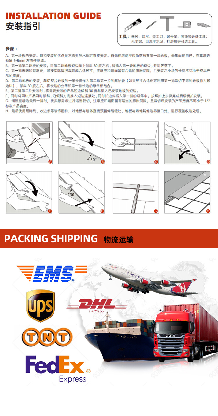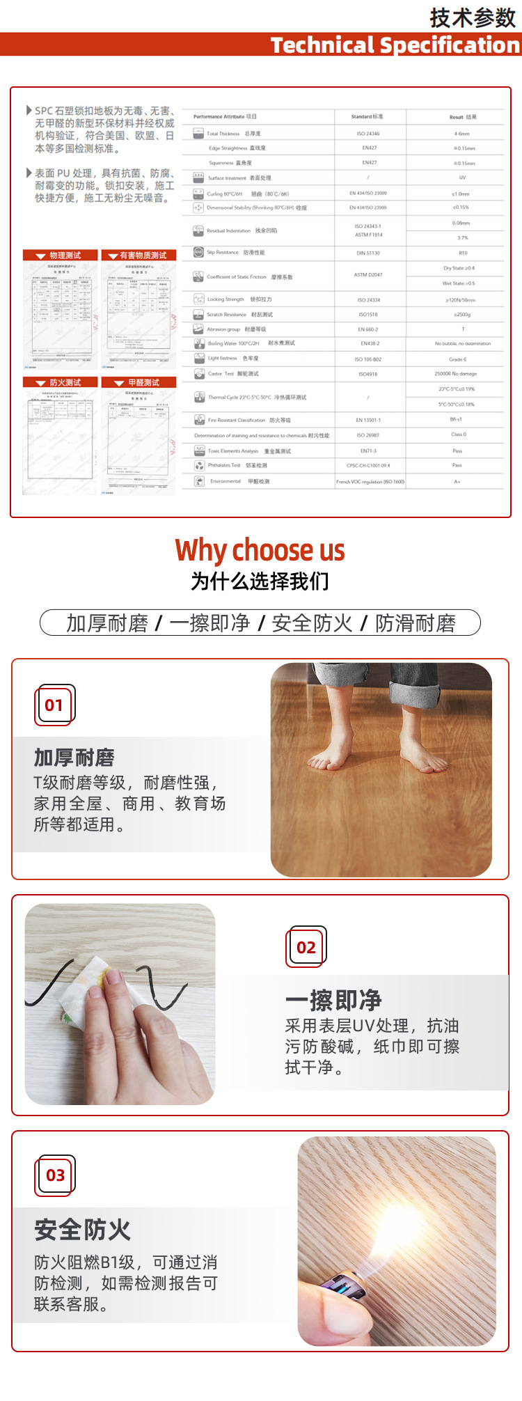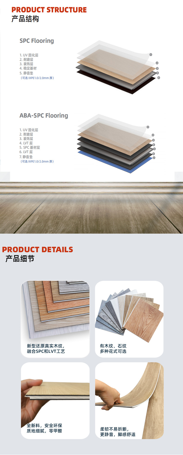 対外貿易SPC石塑性ロック床新研究開発三層構造複合静音床高級感商用家庭用