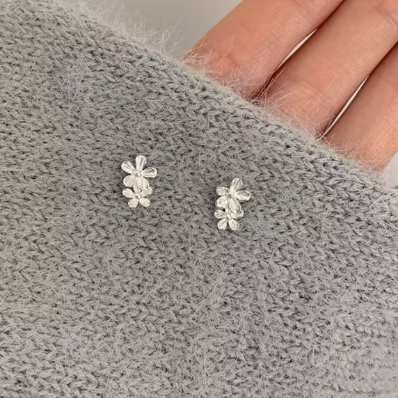 S925銀色の花のピアスの女性大衆はシンプルで、耳の穴の耳の骨のピアスの春夏の銀のイヤリングのファッションをよくします。