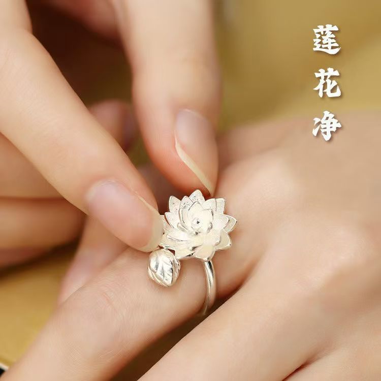新しい中国風の気質の白い蓮の指輪のアイデアの開口部は手の装飾の小さい清新なハスの花の指の輪の女性を調節することができます。