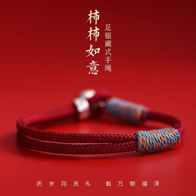 新型中国式925手縄柿如意ブレスレット男女モデルファッション国風本命年編み赤い手縄ins