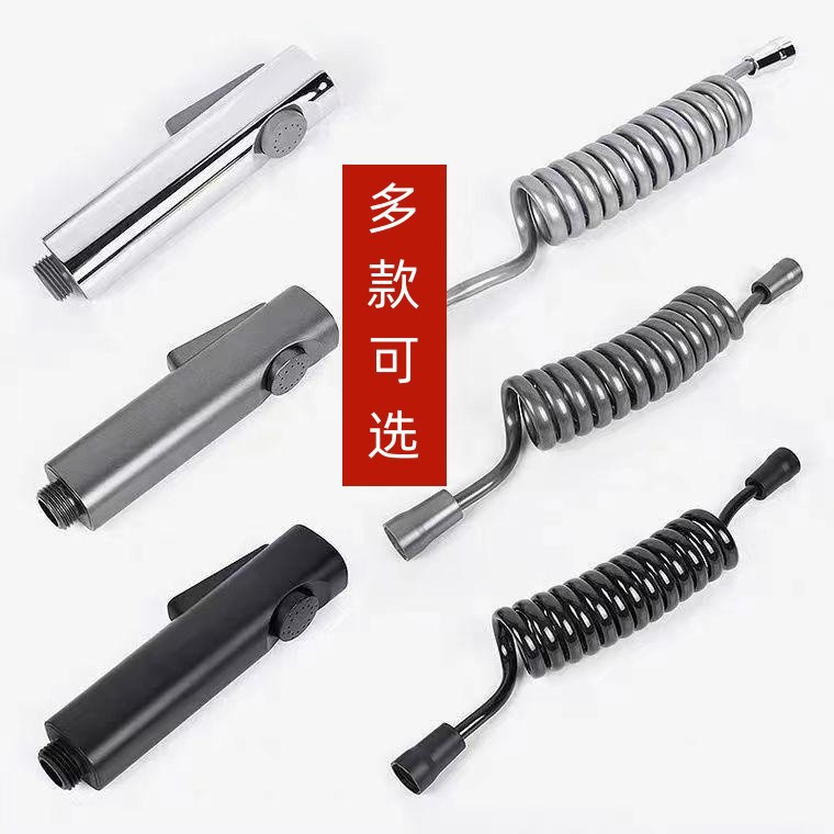 便器の友達が水鉄砲の頭を洗っています。トイレの高圧スプレーガンの灰黒銃の洗濯器トイレの増圧ノズルの水道管です。