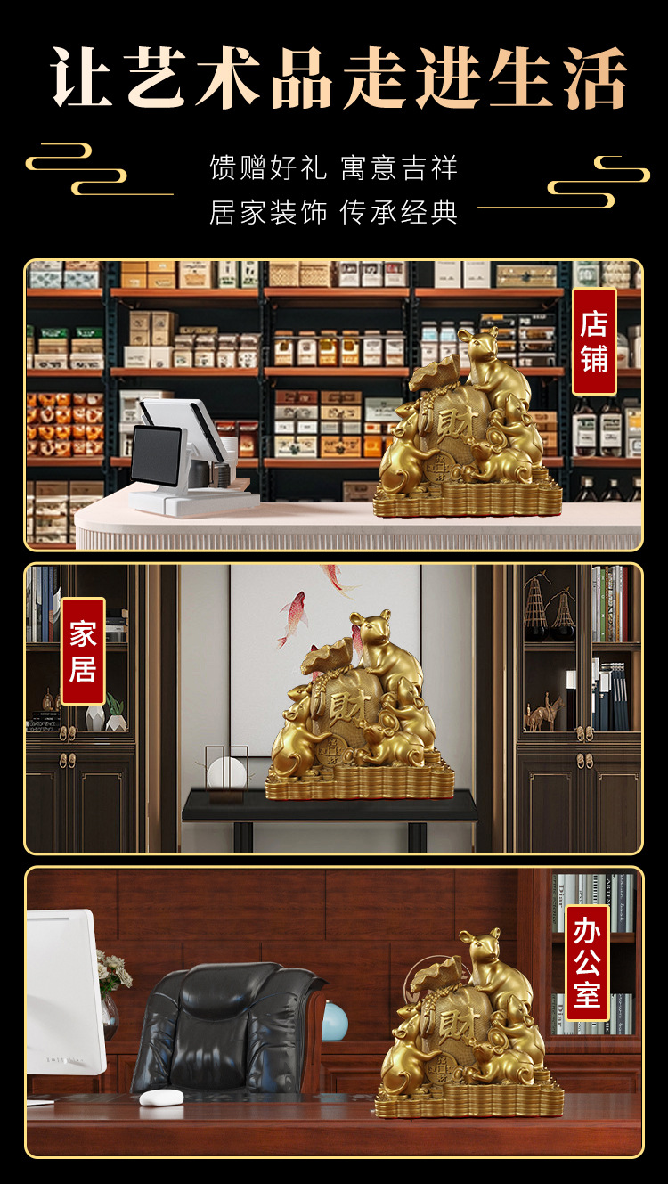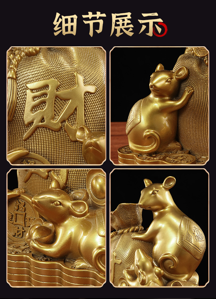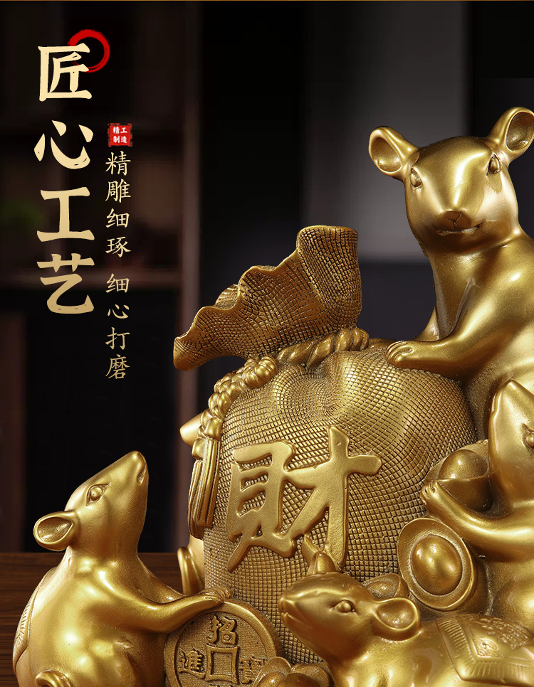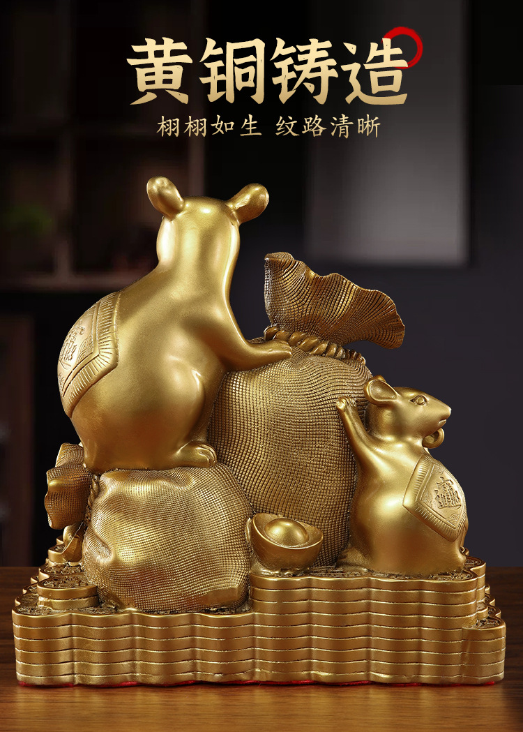 真鍮のネズミの置物招財十二生肖鼠の黄金鼠の生肖鼠招財鼠の家庭の客間の寝室の置物