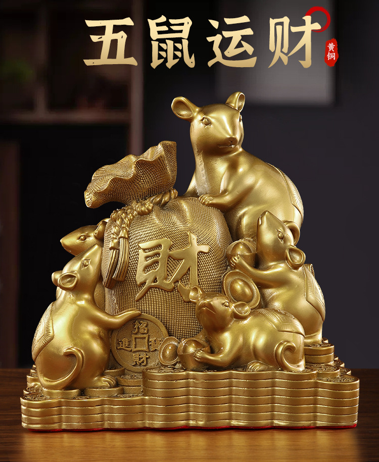 銅ネズミ置物マスコット五鼠運財純真鍮生肖鼠客間ホームオフィス装飾工芸品