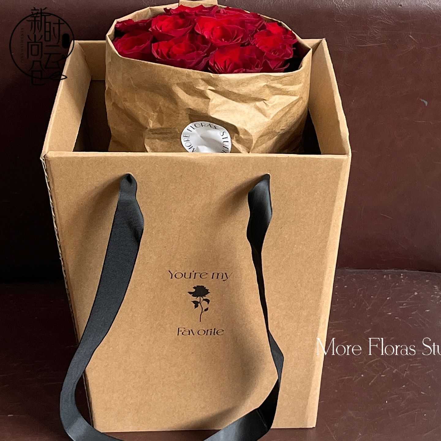 情人节正方形加厚牛皮纸硬挺ins花盒鲜花花束包装梯形手提袋