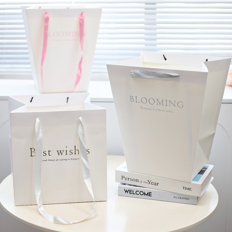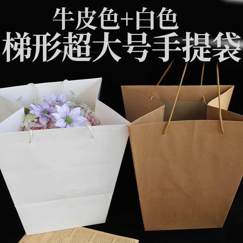 大号牛皮白色梯形手提袋花束鲜花手提袋玩偶玩具包装袋花艺批发