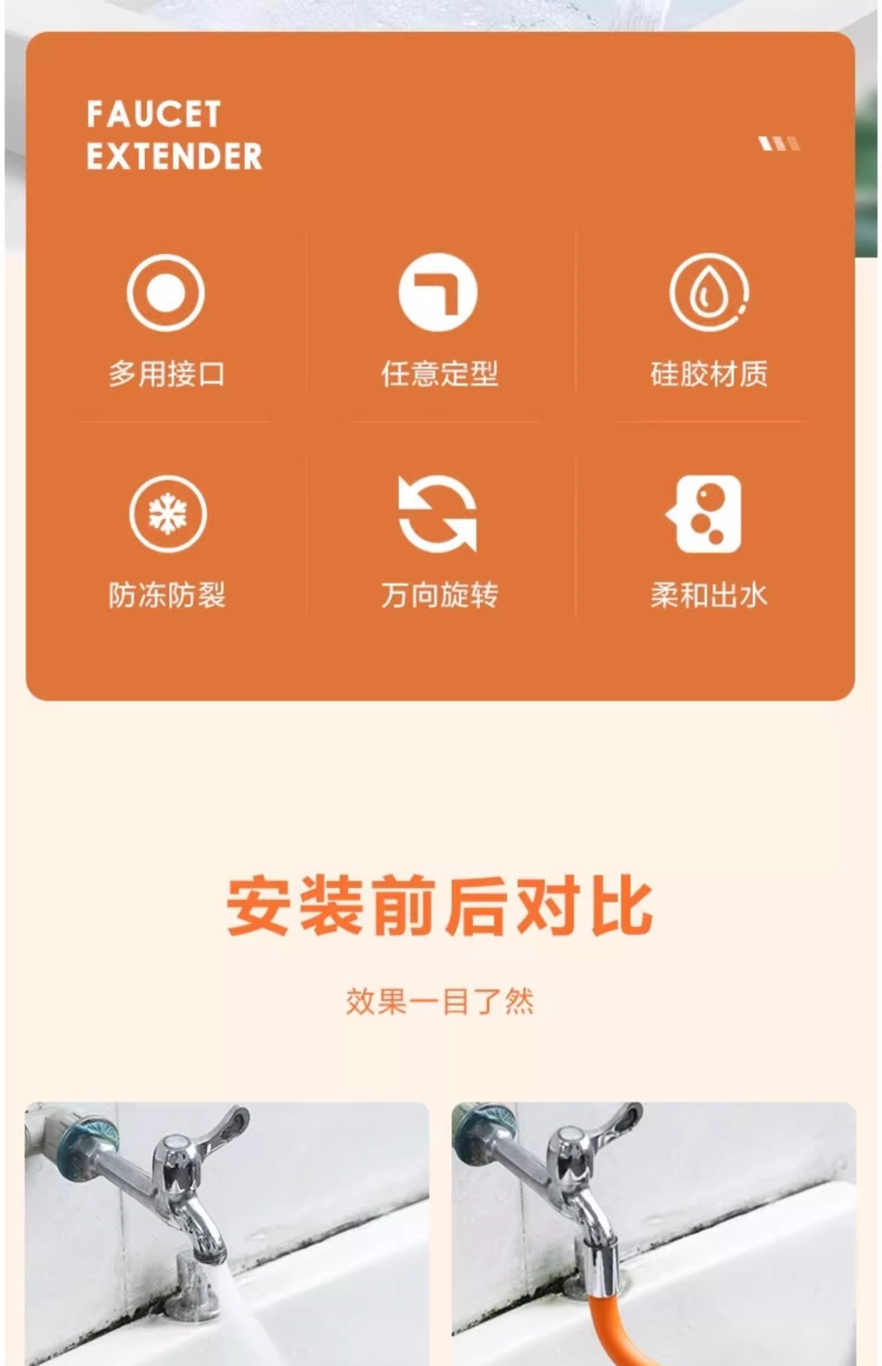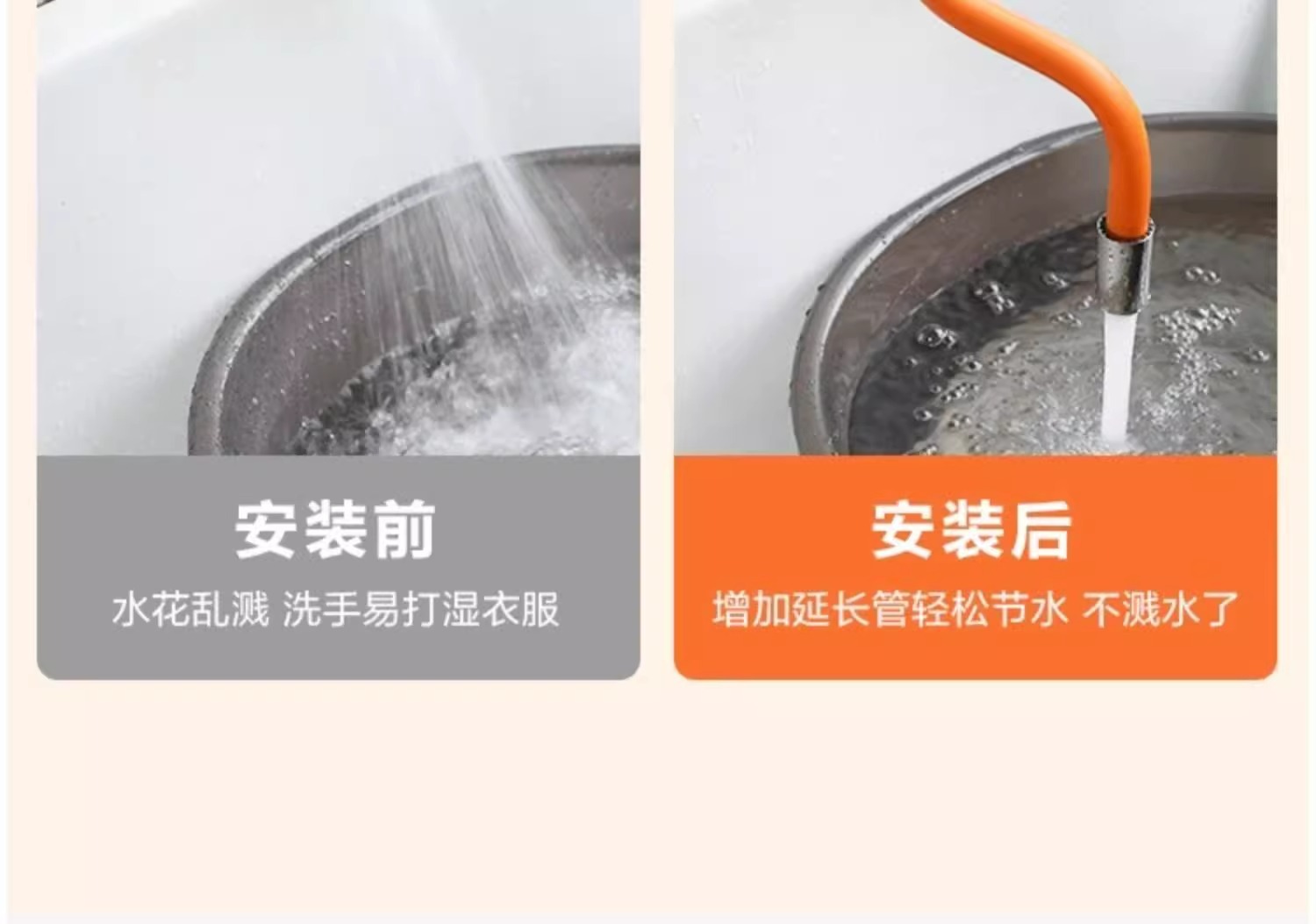 蛇口延長パイプ、延長水道管、蛇口延長パイプ、防滴水、万方向回転ソフトチューブ、万能防滴ヘッド
