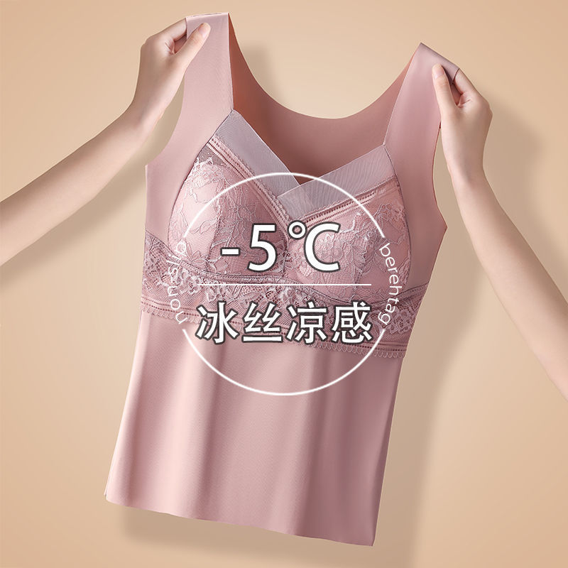 新款秋冬季德绒保暖背心大码无痕自发热内衣蕾丝打底衫自带胸垫女