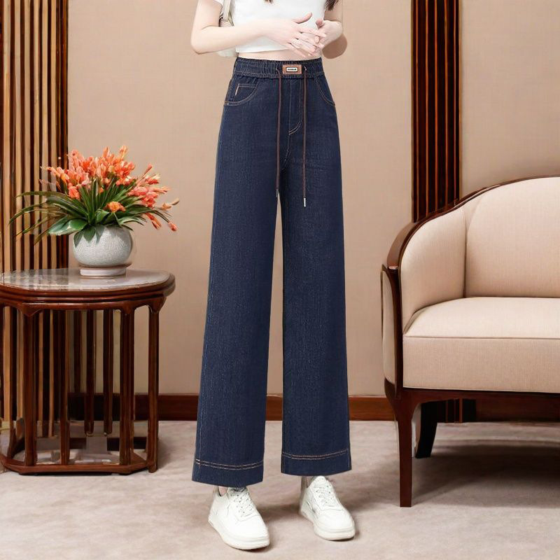 女性用ワイドレッグジーンズ 2025 秋の新作ハイウエスト痩身ワイドレッグパンツレトロストレッチ多用途フロアレングスストレートパンツ