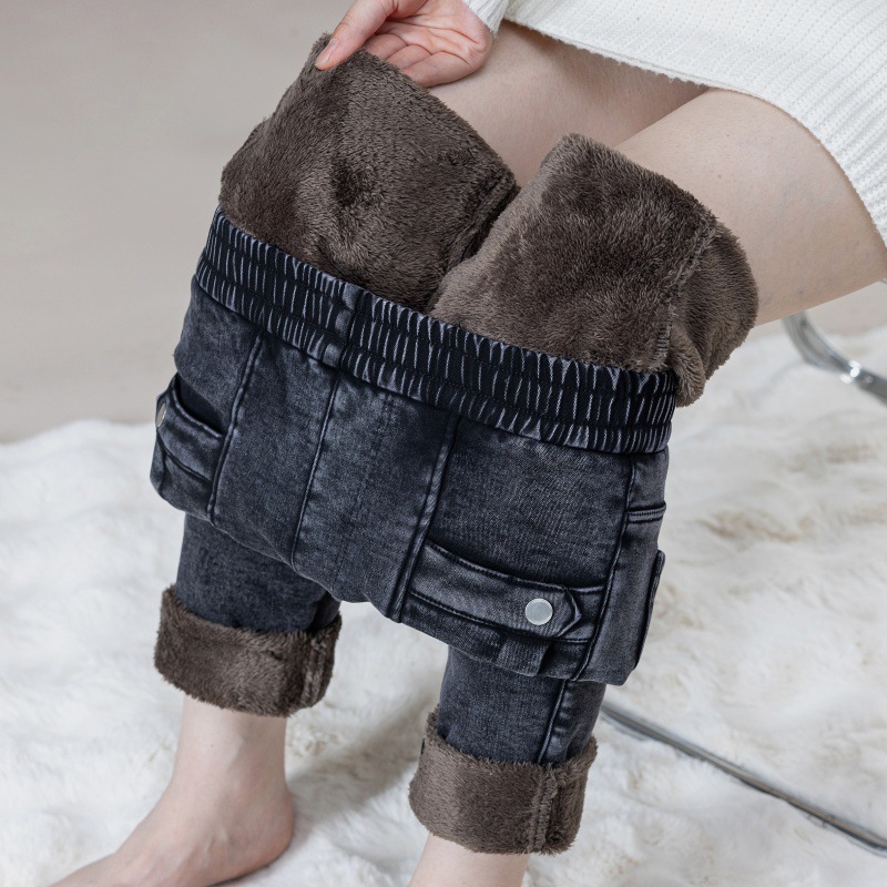 2025冬季加绒保暖小脚裤高腰显瘦厚款弹力修身百搭长裤牛仔裤女