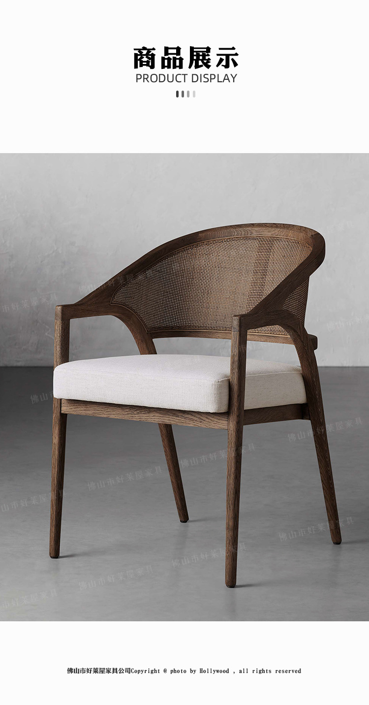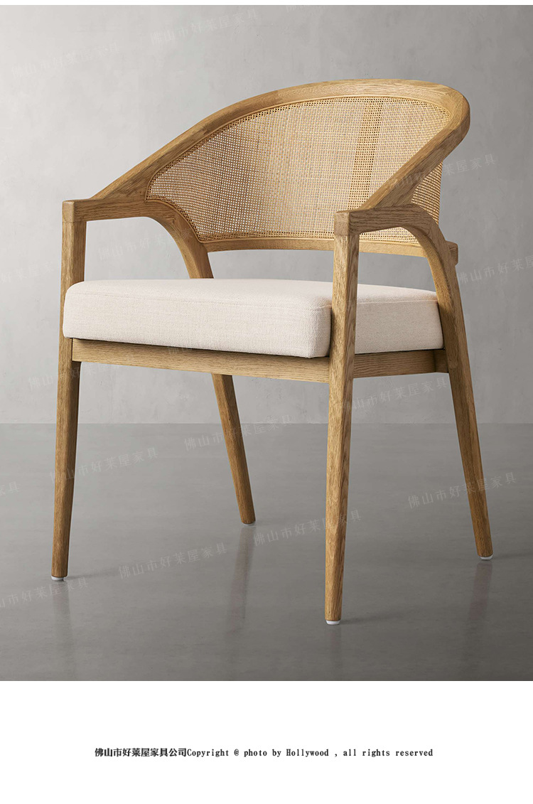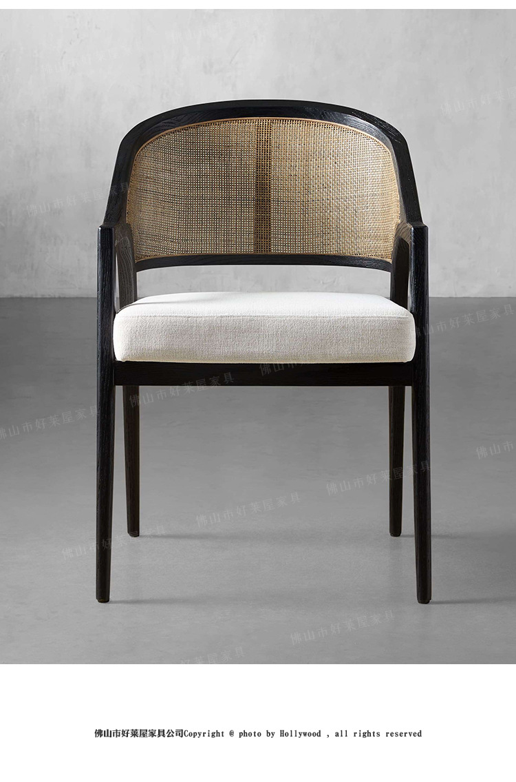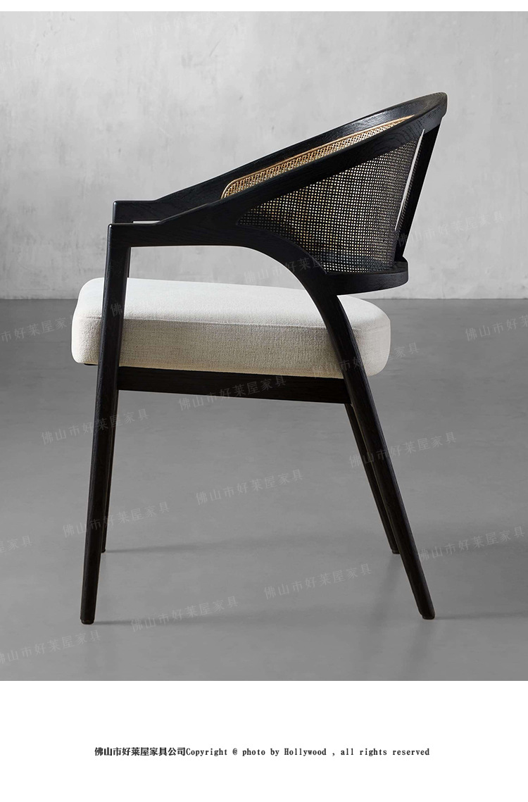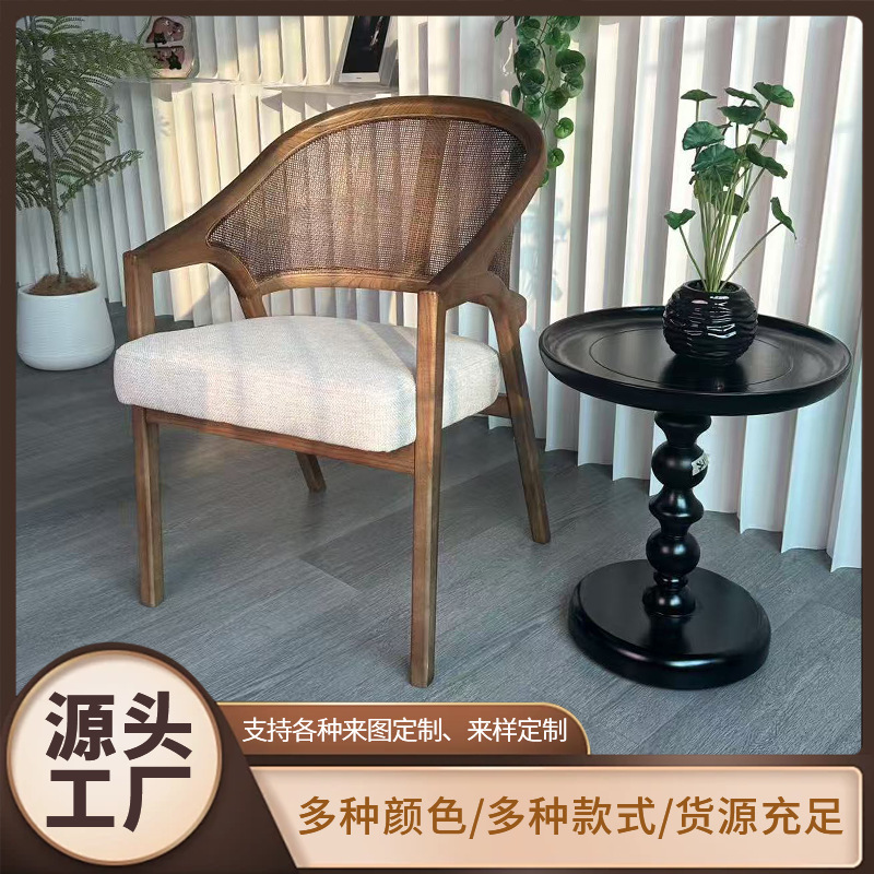 北欧简约复古实木藤编餐椅民宿酒店靠背休闲椅设计师样板间接待洽