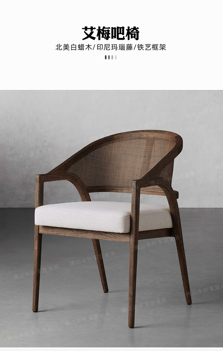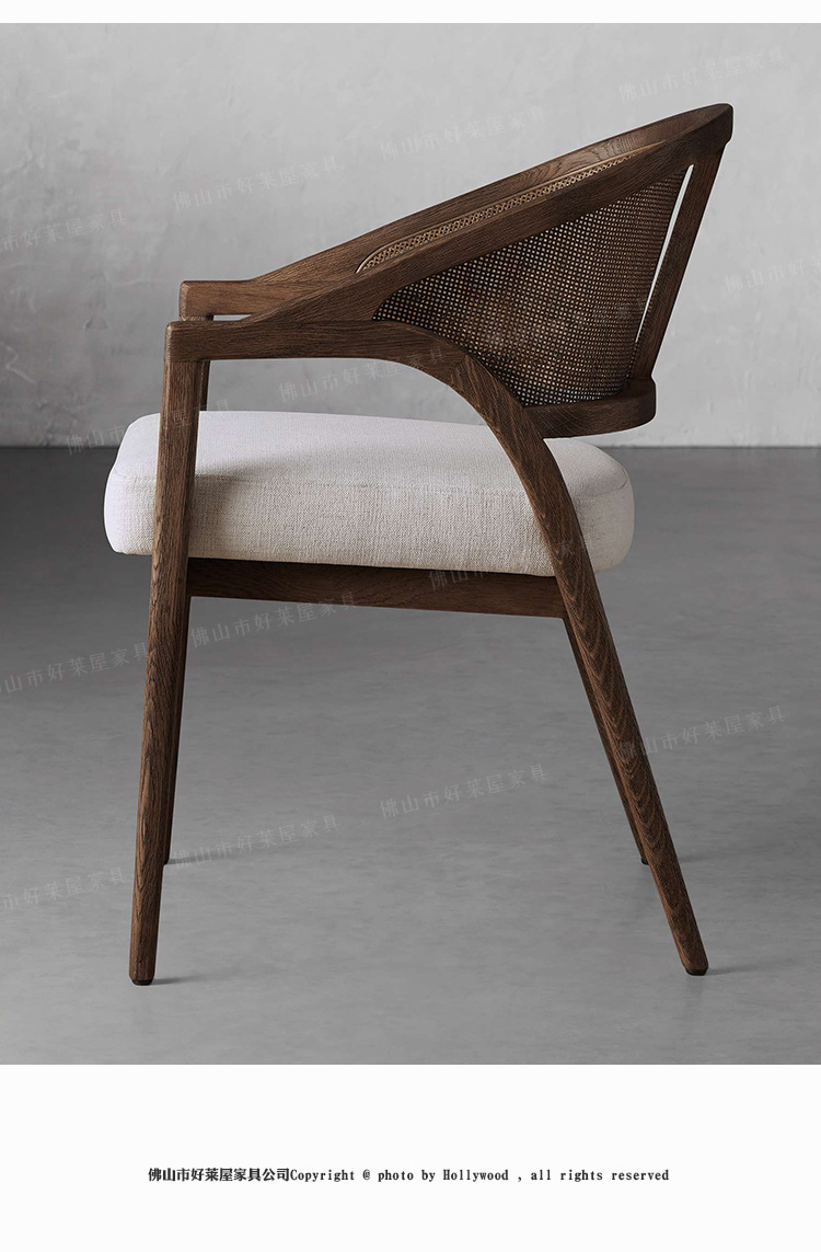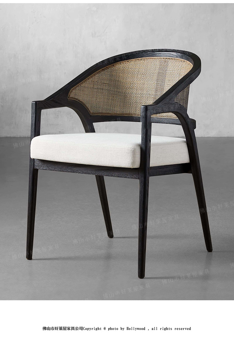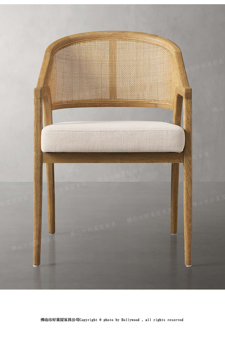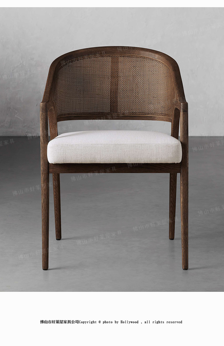 北欧简约复古实木藤编餐椅民宿酒店靠背休闲椅设计师样板间接待洽