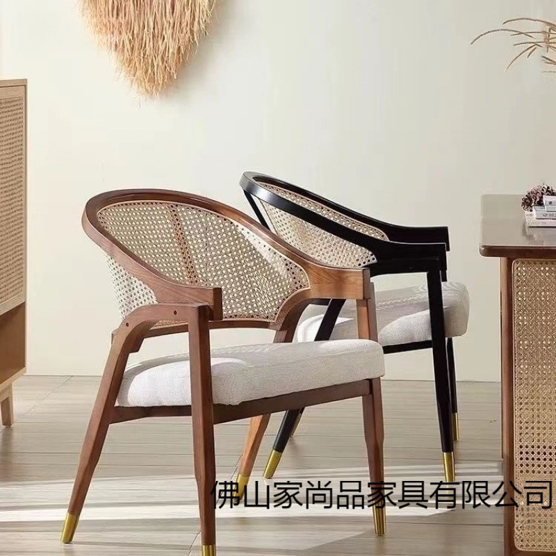 無垢材籐ダイニングチェア B&B ホテルチェアデザイナー Jingjifeng 家具カフェ交渉椅子西洋レストラン
