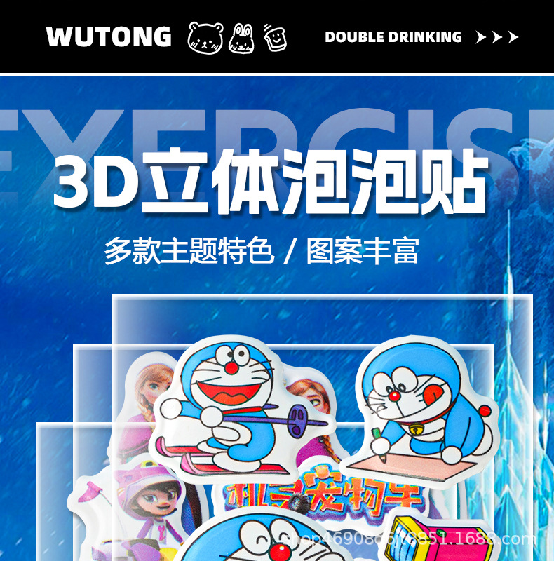 儿童卡通贴画3D立体泡泡贴数字字母小动物幼儿园女孩公主奖励贴纸