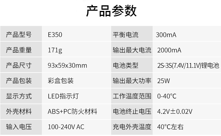 HOTRC e 350スマートバランス充電器ハイパワー25w航空モデル車モデル2s 3s 7.4/11.1vリチウム電気
