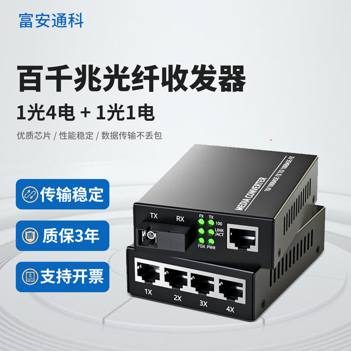 工場直販100M光1電シングルモードシングルファイバ光電変換器1光4電+1光1光ファイバトランシーバ