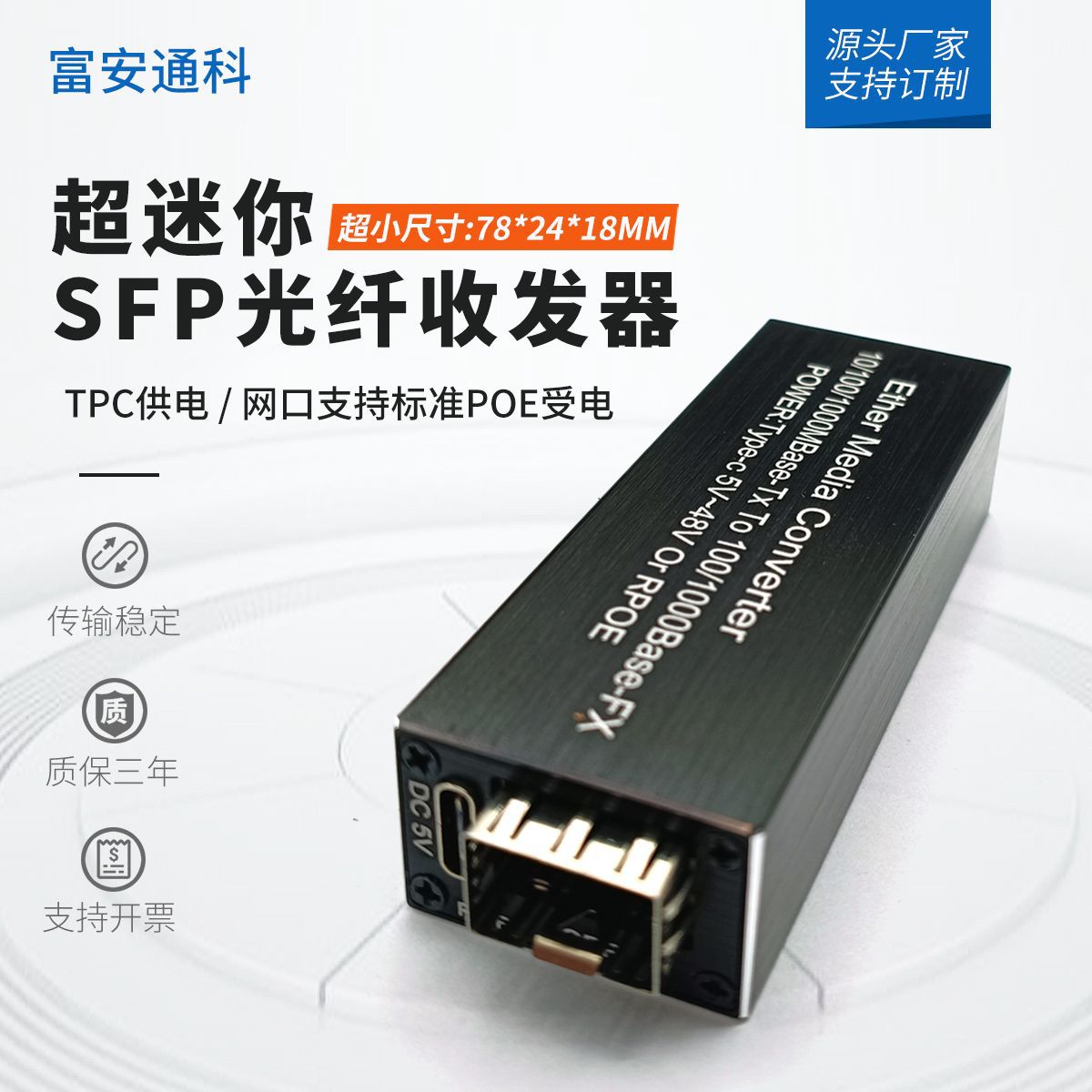 SFP ギガビット TYPE-C 電源供給 5v-48v 電源供給 POE 電源供給 1 光 1 電気 MINI 光ファイバートランシーバー