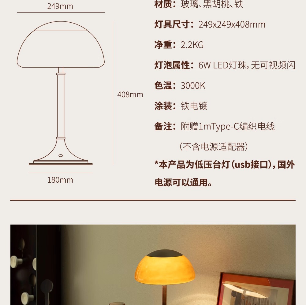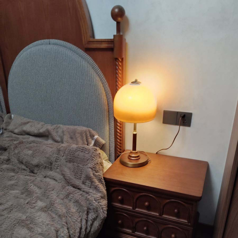 中古台灯复古胡桃木色玻璃装饰台灯美式卧室床头书房高级感创意灯