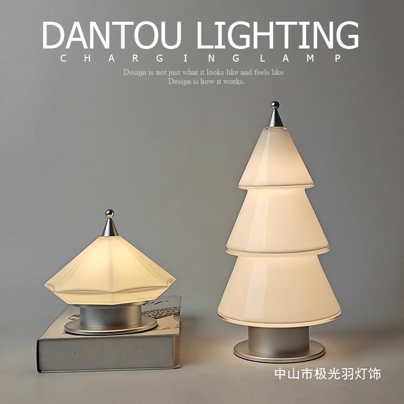 中古奶油风触摸开关可调光氛围灯砖石圣诞树创意客厅充电客厅台灯