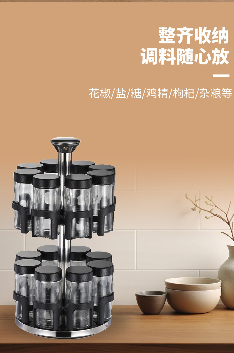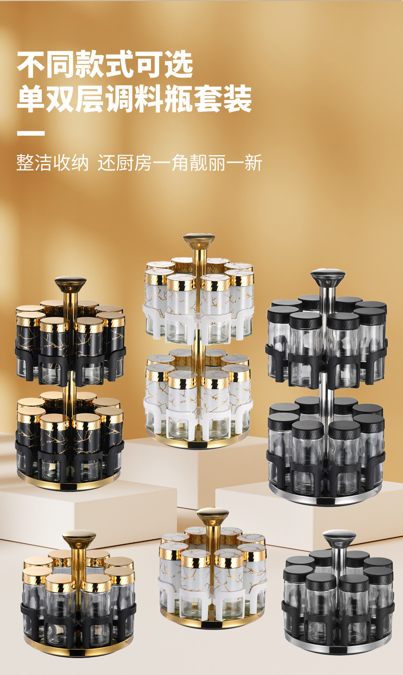 JWシングルレイヤー巨大サイズアマゾンガラス調味料入れ調味料ボックス調味料瓶回転式調味料入れセット