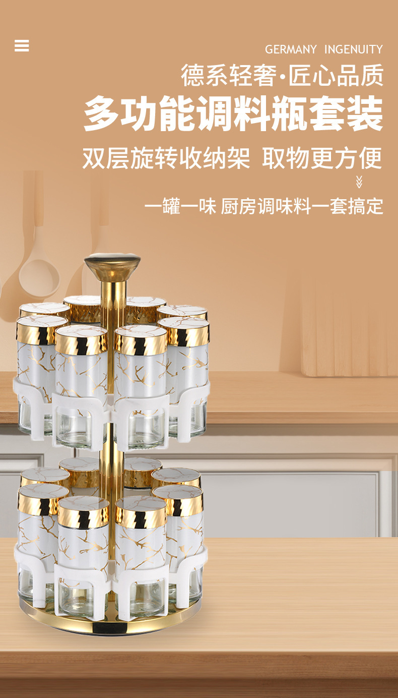 クロスボーダー軽豪華Z字型コンビネーション調味料棚ガラス調味料缶密封防湿台所用品調味料缶セット