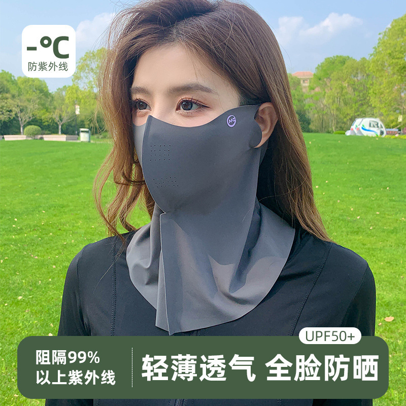 夏の日焼け止めマスク、立体的なシームレスな日よけ、紫外線防止、女性の首と目の保護、通気性のあるアイスシルクマスク、軽くて薄い