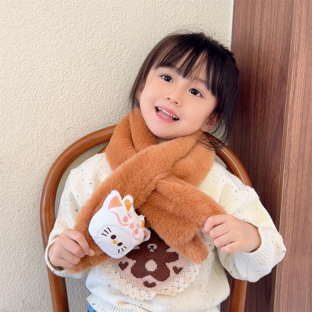 2024秋冬の新型ぬいぐるみ子供が首を囲んで交差して防風保温がかわいいアニメ親子マフラー男女を厚くする