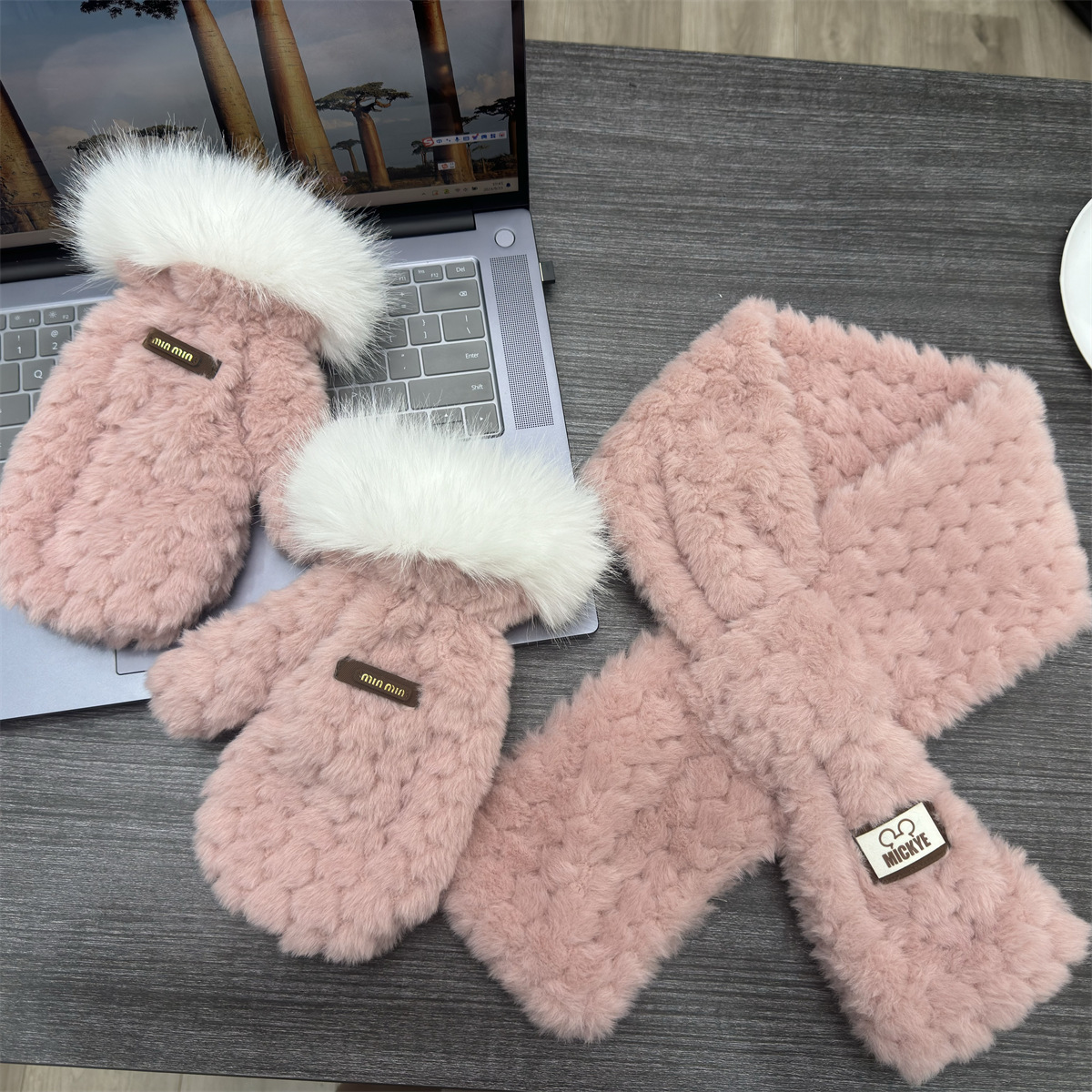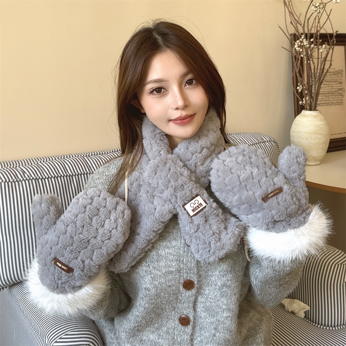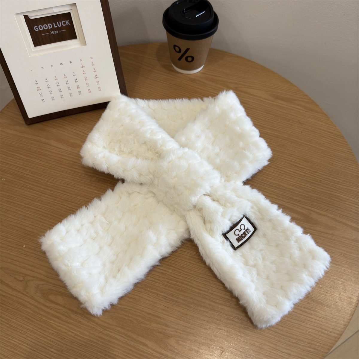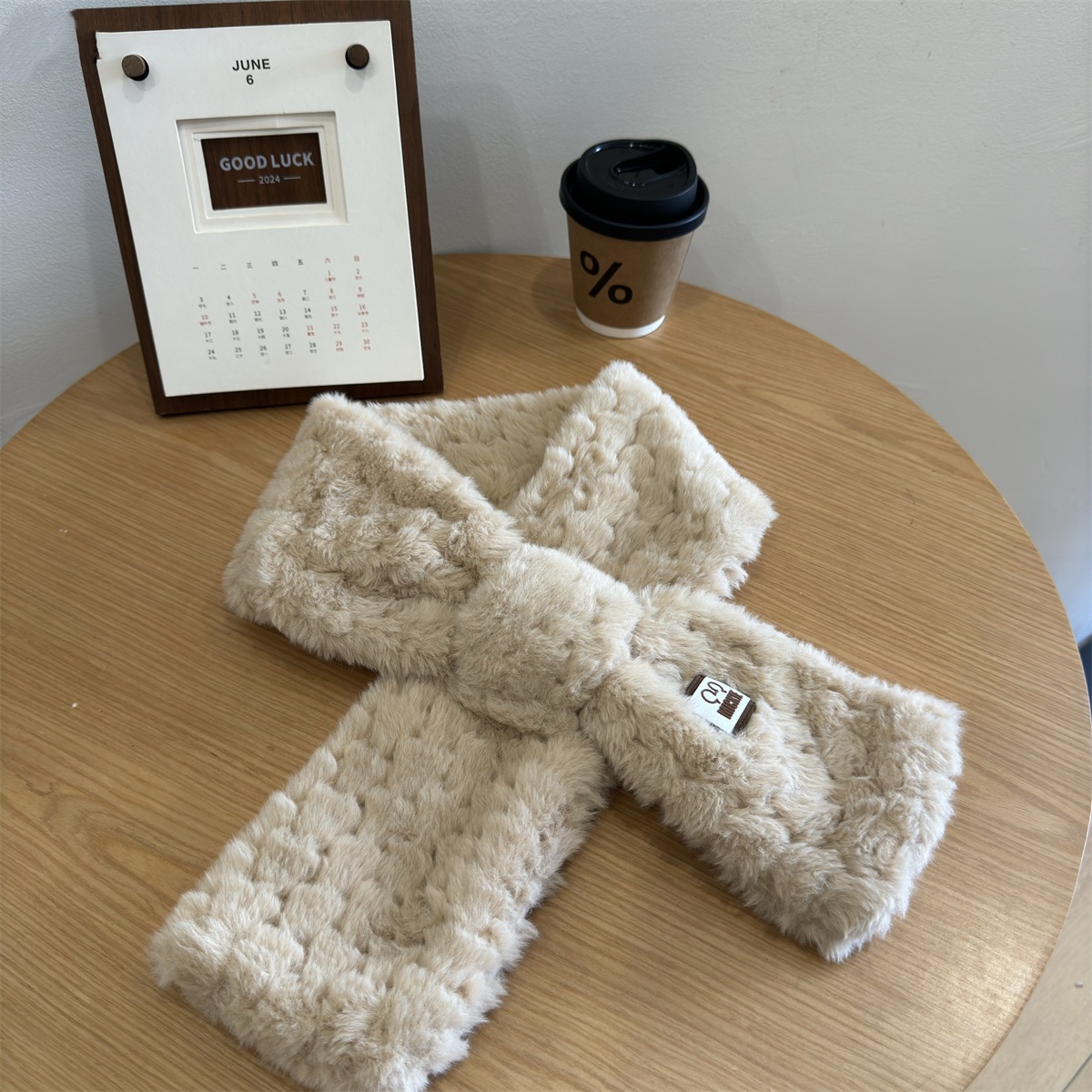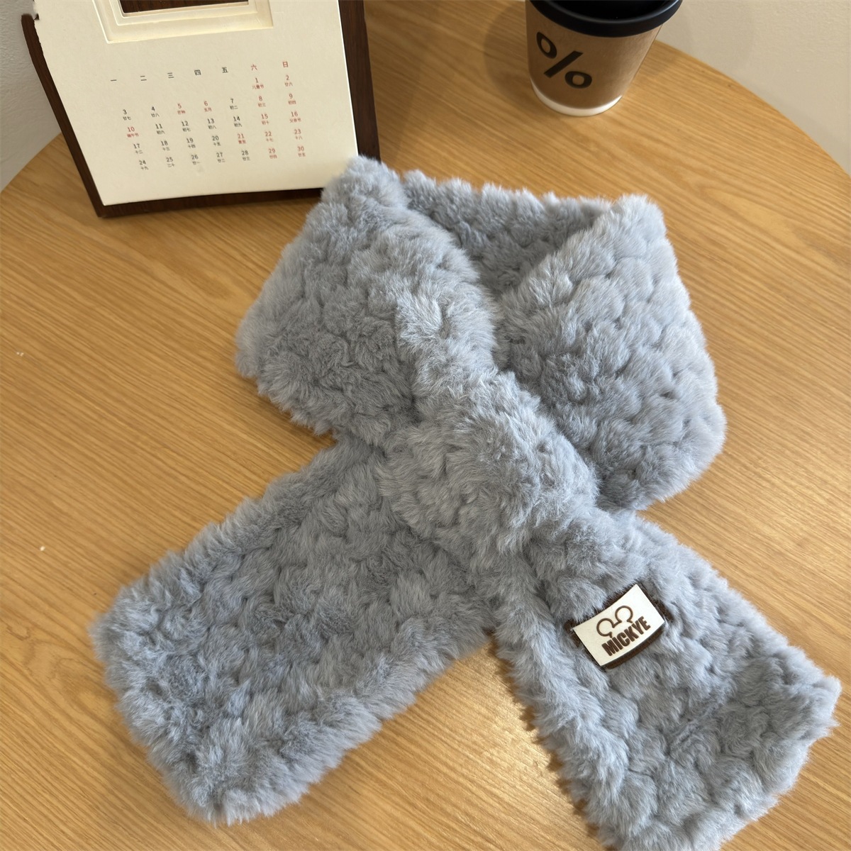 2024オリジナルの新型クロスマフラー女性冬保温百合学生カップルのマフラーのぬいぐるみはウサギの毛に似せている