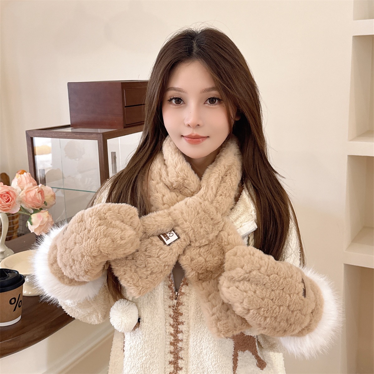 2024旅行ぬいぐるみ手袋女性冬かわいい自転車保温厚い自転車防風防寒首掛けマフラー