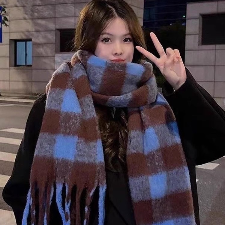 2024秋冬のマフラーの女性の高級感のカップルの韓国版のストールの学生の女性のタイプのフリンジの格子の長いタイプのマフラーの保温