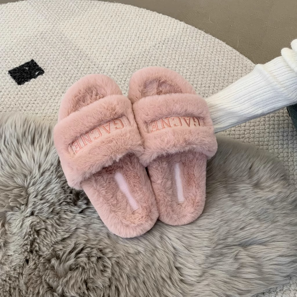 【Youshilai】本物のウサギの毛のスリッパの女性は秋冬のベルベットの毛の靴を履いて糞感のある綿のスリッパを踏んでいる