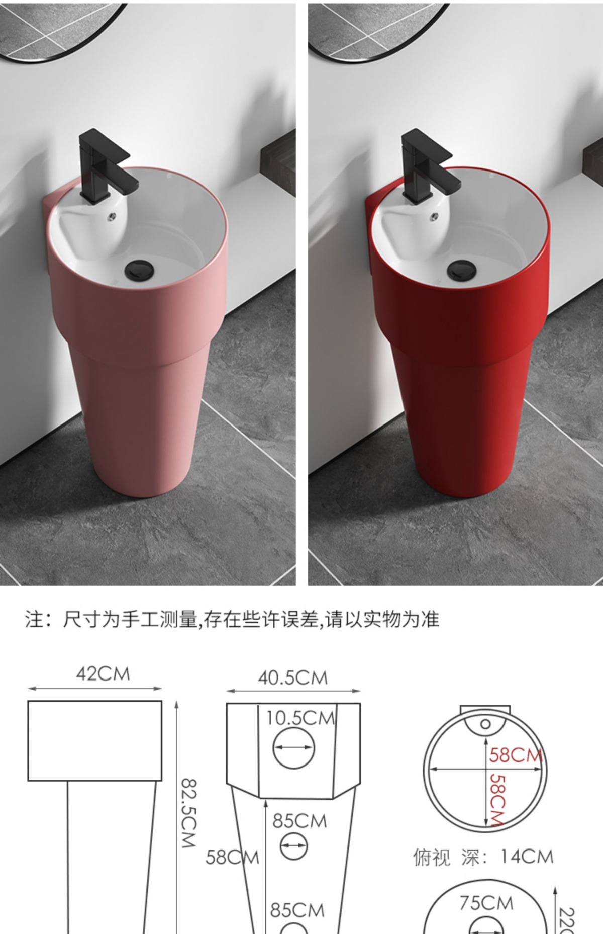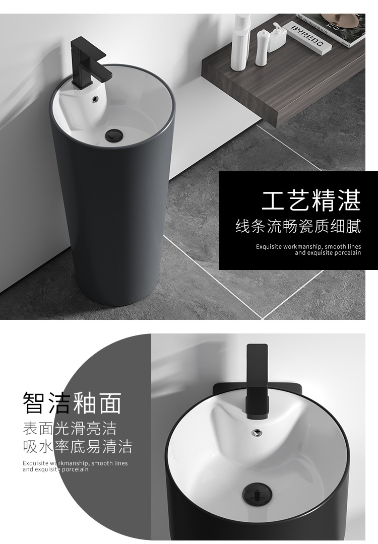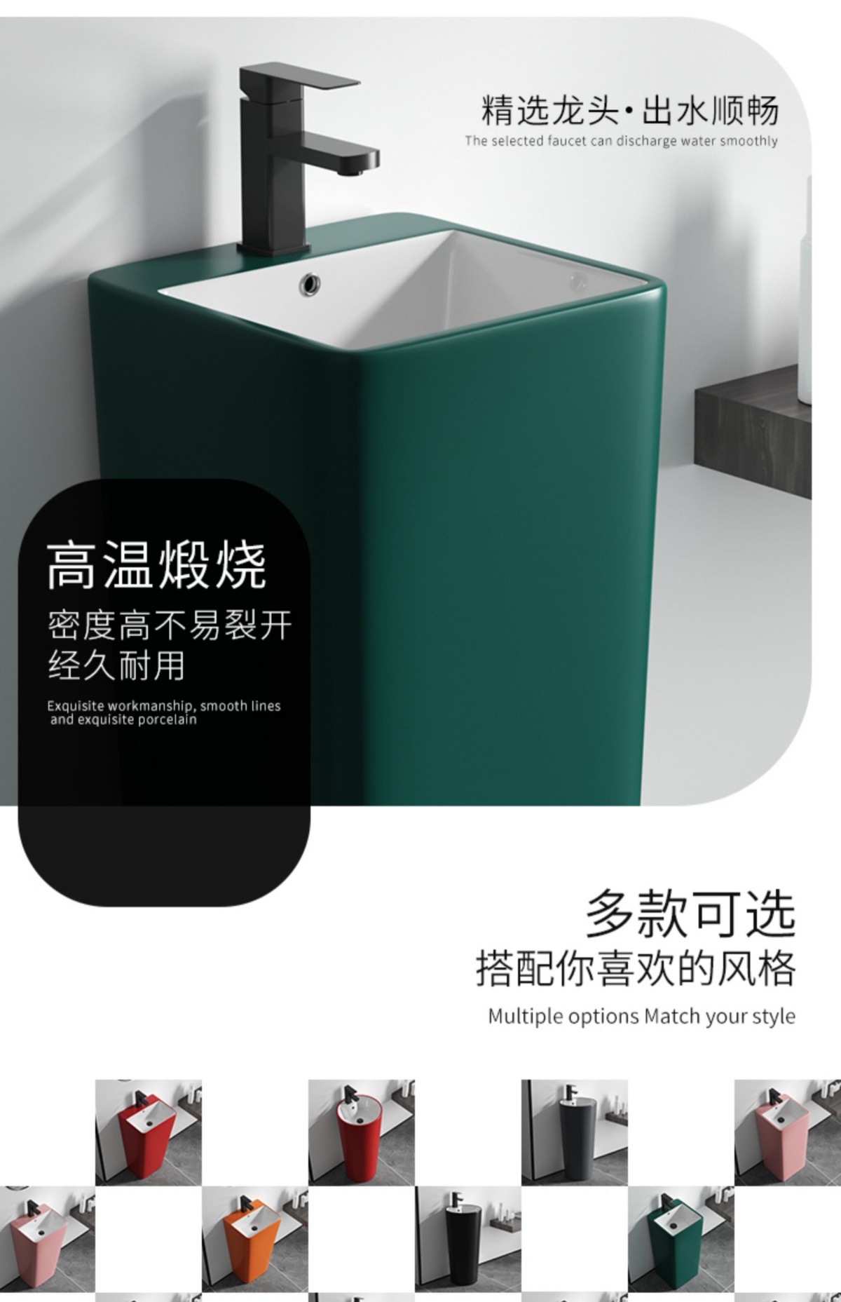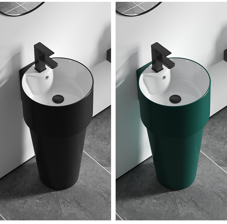 立柱式陶瓷盆彩色磨砂立柱盆个性简约一体落地洗手盆小户型洗漱台