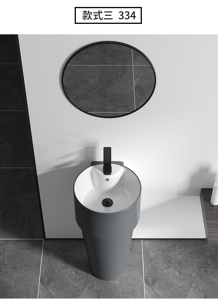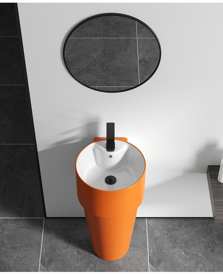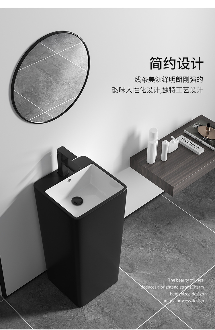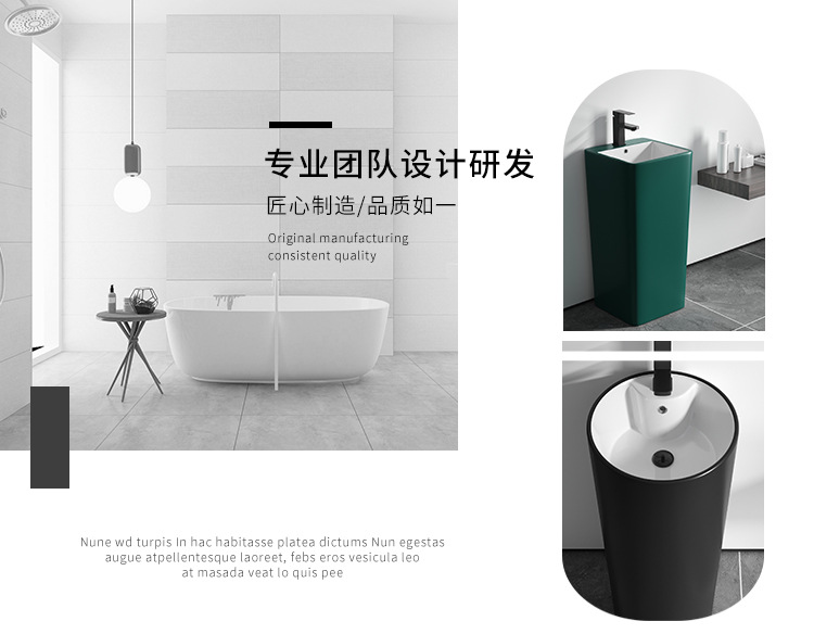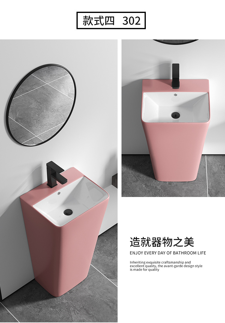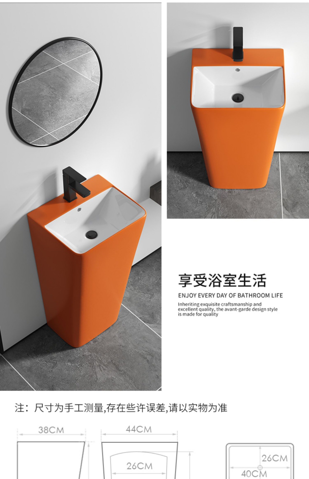 立柱式陶瓷盆彩色磨砂立柱盆个性简约一体落地洗手盆小户型洗漱台