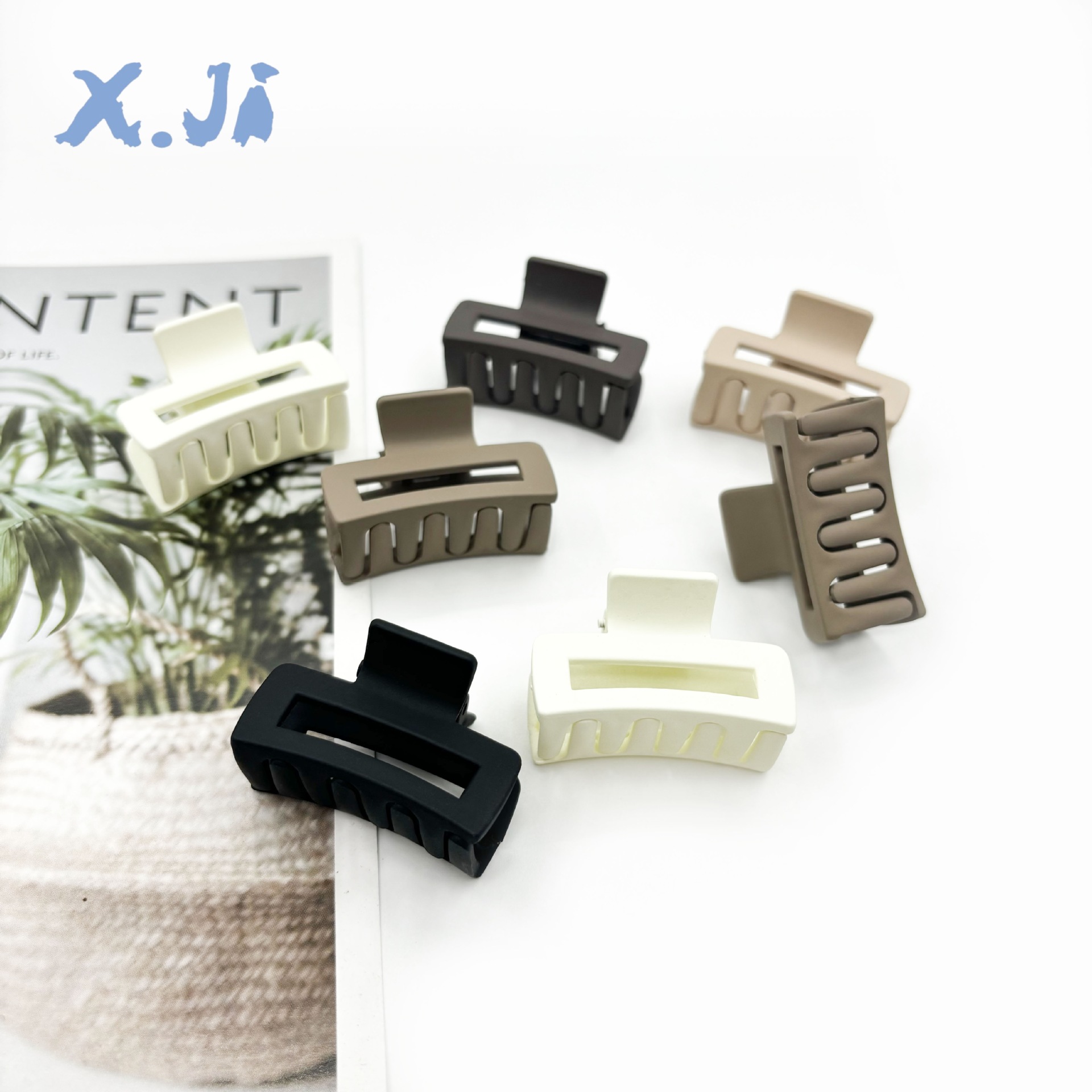4CM中号方形抓夹磨砂奶咖色发夹后脑勺半扎马尾夹鲨鱼夹发卡批发