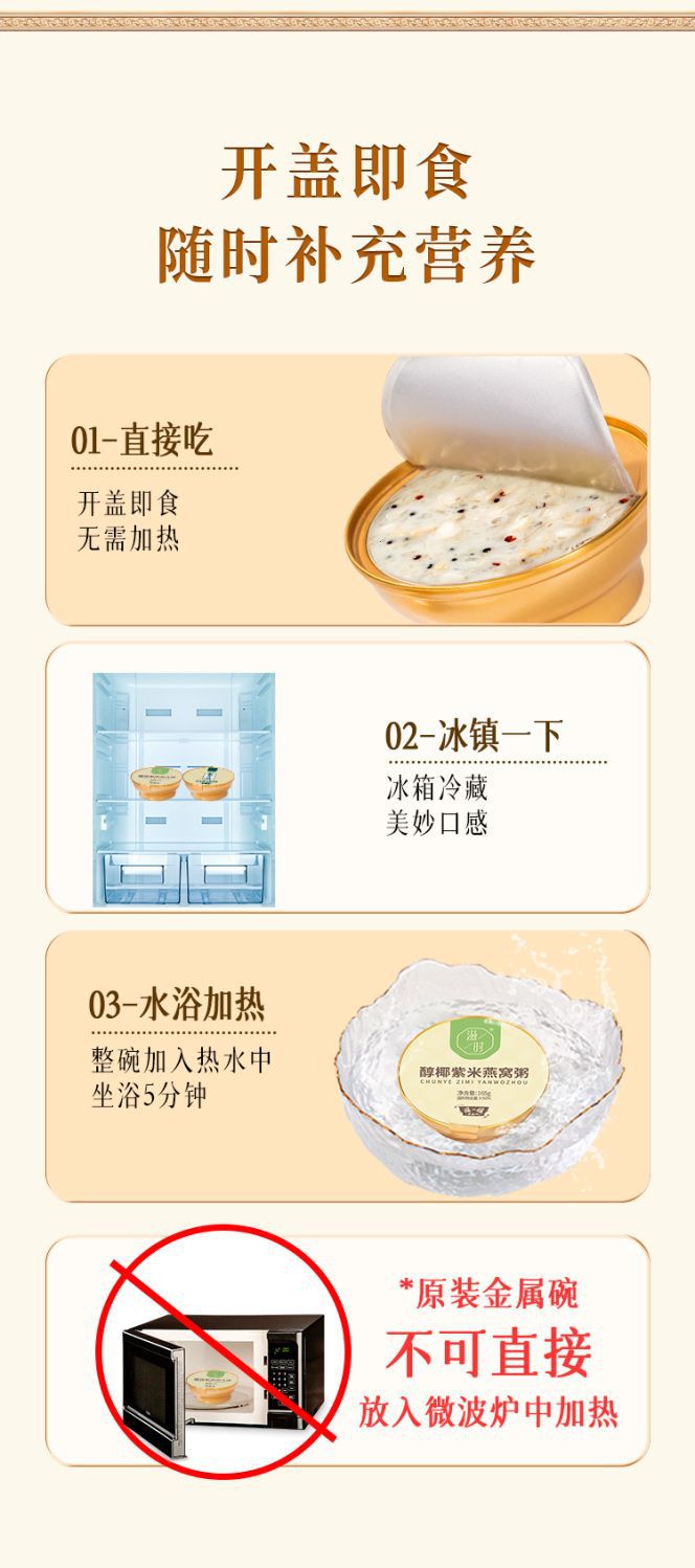 高級ツバメの巣粥、すぐに食べられる黒米ミルク朝食粥、小さな金ボウル、調理不要のインスタント粥、すぐに食べられる粥卸売
