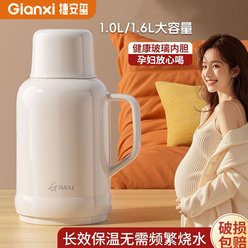 捷安熙 家庭用ガラス内胆保温ポット 無地 高級感 熱湯ボトル 大容量 学生寮用保温ポット