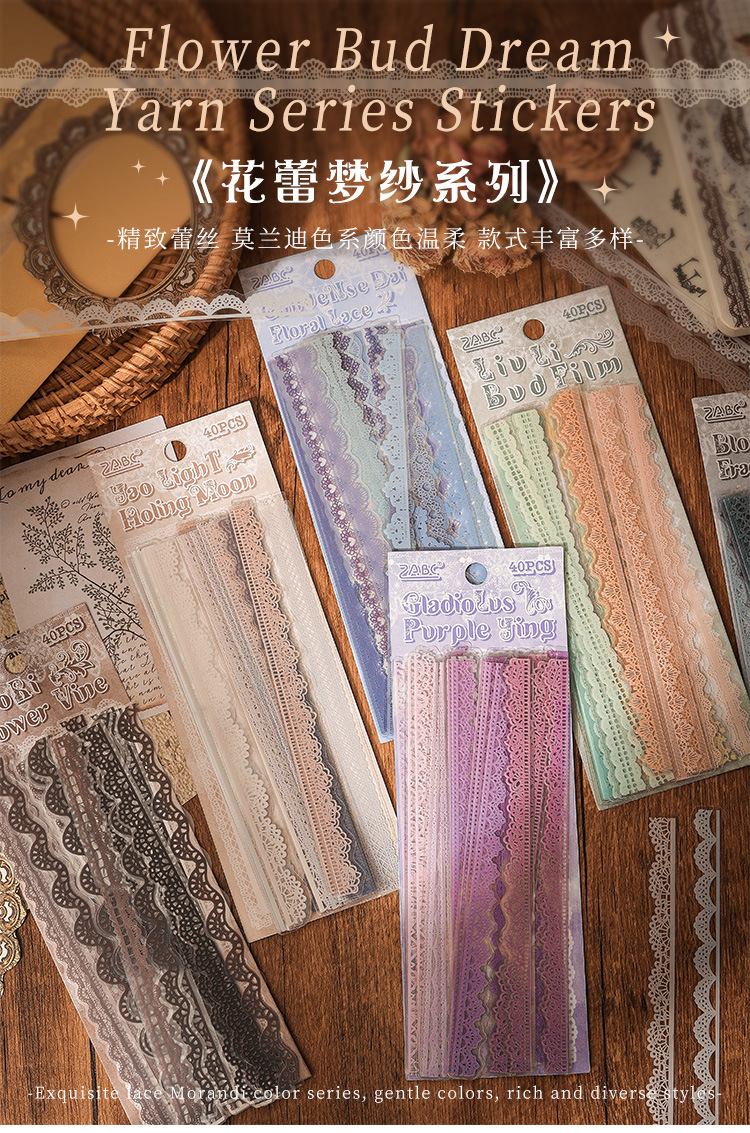 クロスボーダー専用のつぼみの夢の糸のレースのタイルのステッカーは手帳のレースの底の手帳の素材を包んで絵を貼って卸売りします。