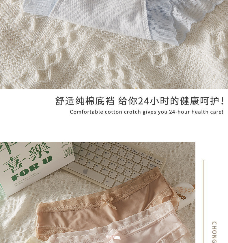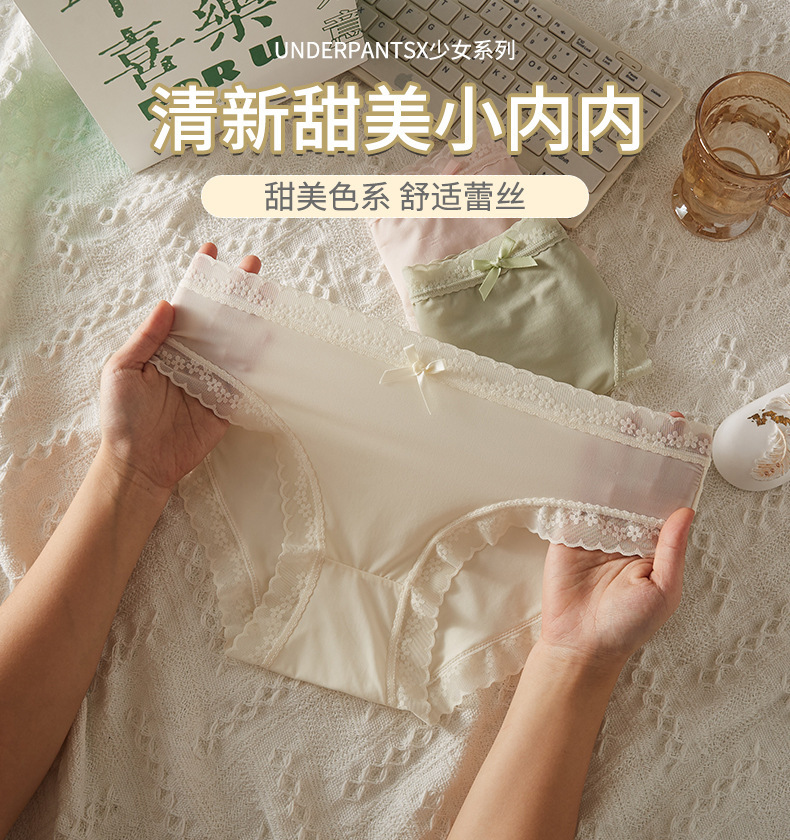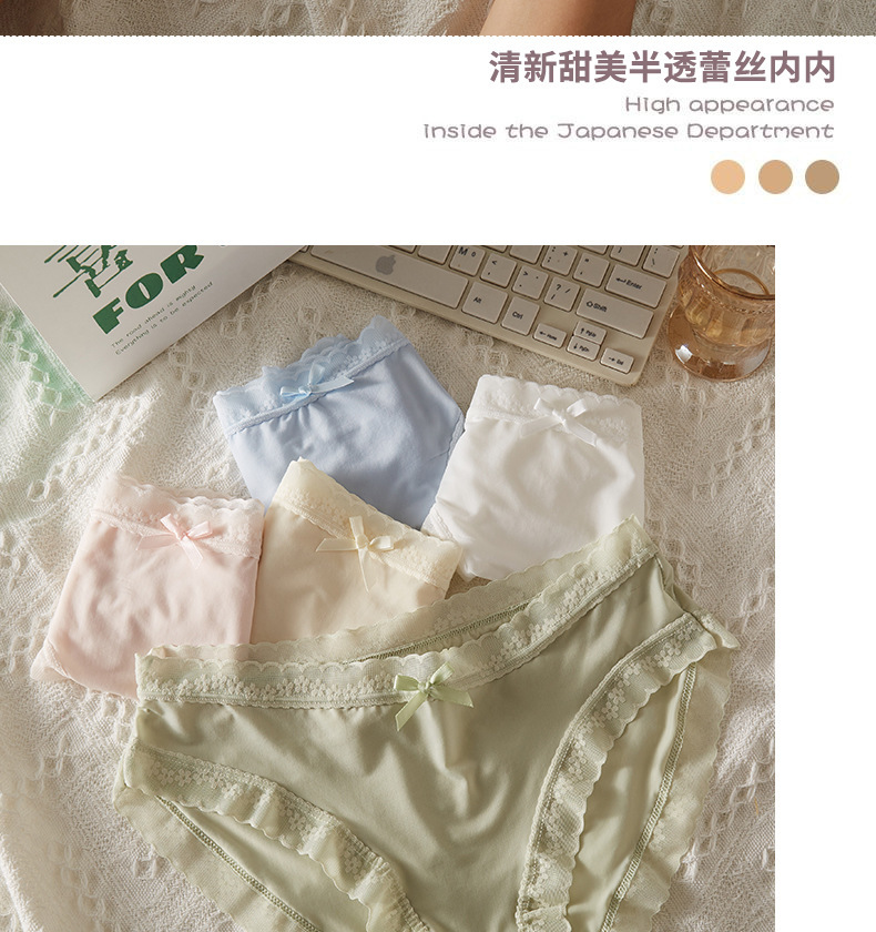 薄款透色女士内裤无痕亲肤蕾丝纯欲夏少女学生中腰三角裤跨境批发
