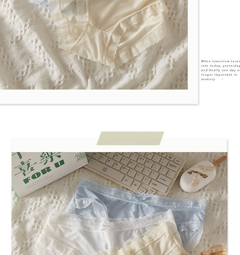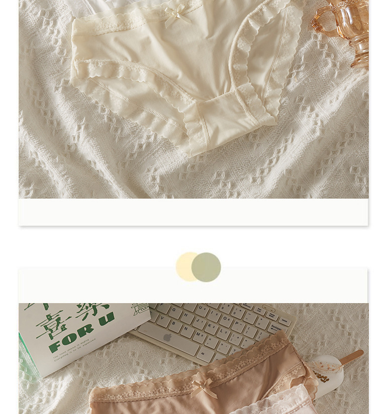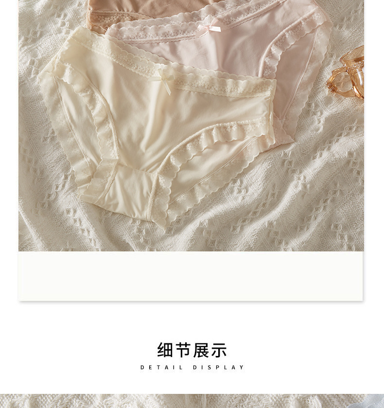 冰丝薄款内裤清凉感软糯蕾丝花边纯色裸感纯欲女生内裤女法式裤衩
