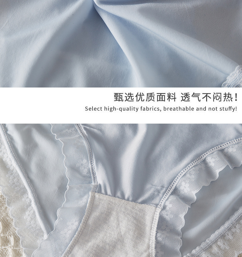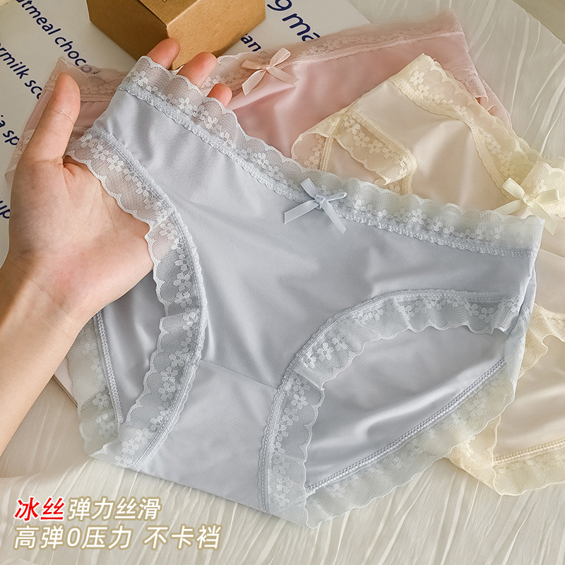 女の子の下着アイスシルクレースメッシュミッドウエスト下着女性のシームレスな軽量純綿股通気性女性のブリーフ