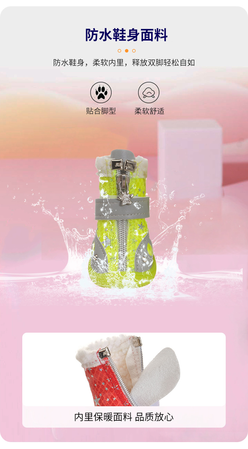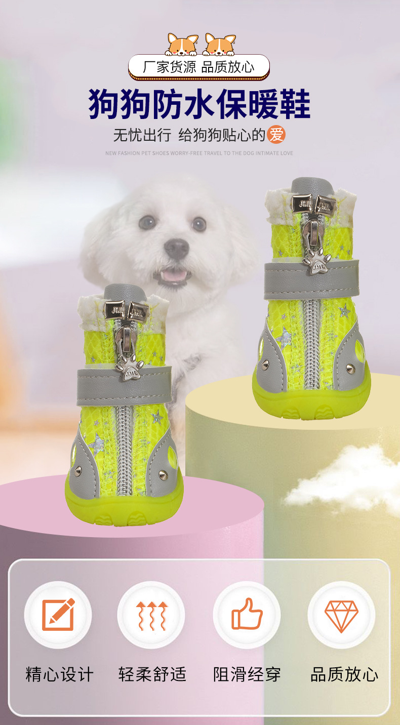 秋冬新款薄款加绒狗狗鞋子时尚亮丽外出防滑保暖柴犬比熊宠物鞋子