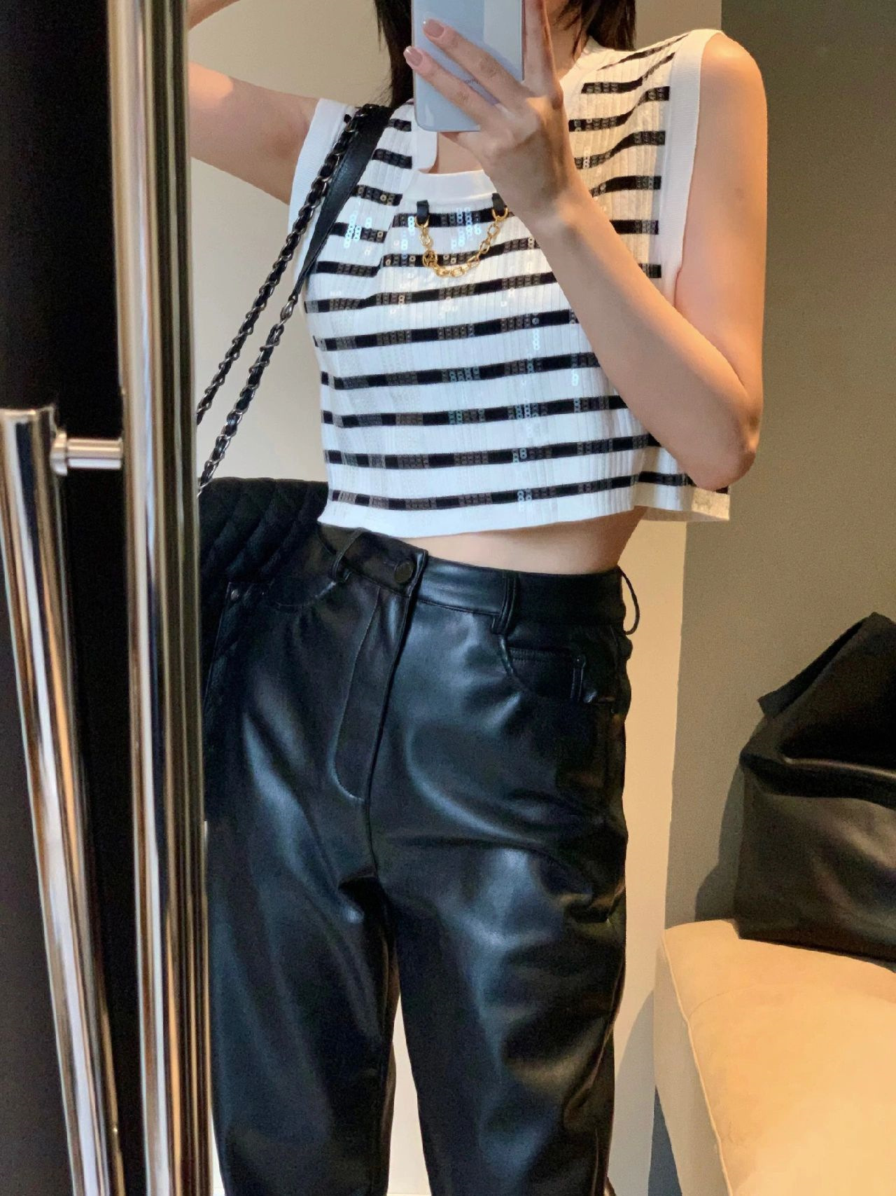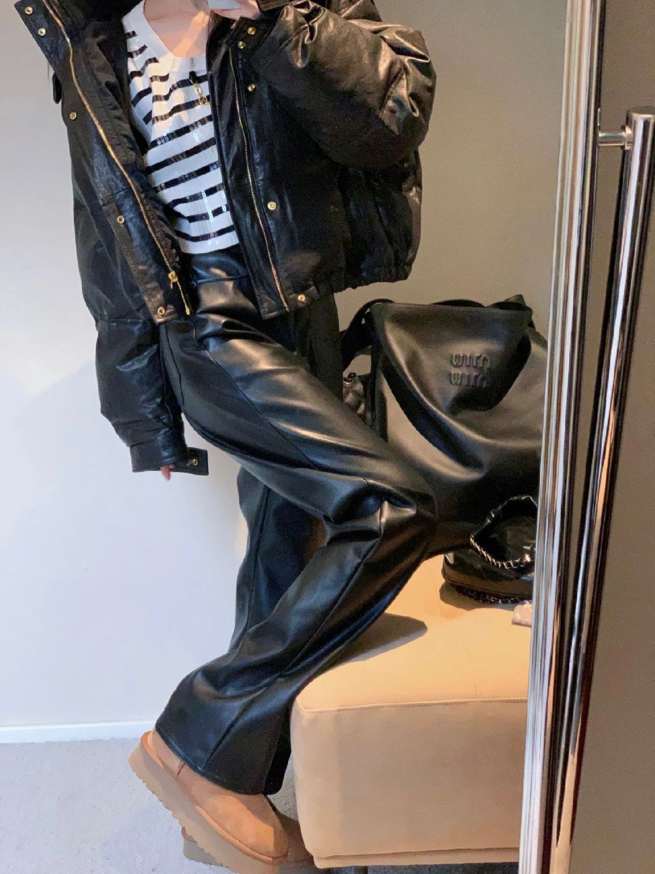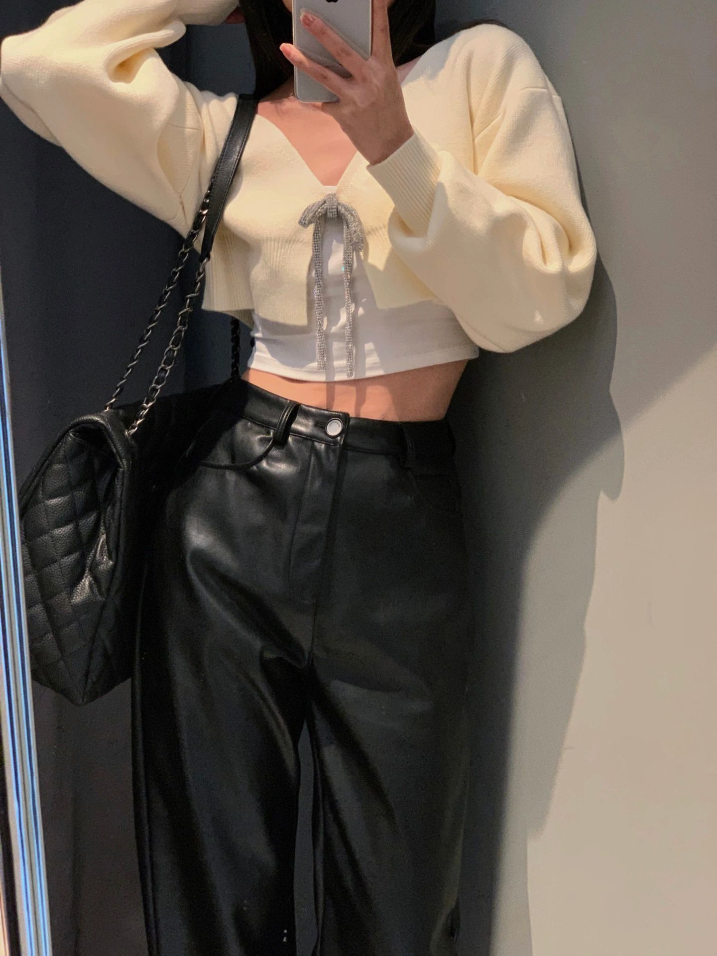 大きいサイズの太ったmmの黒い革のズボンの女性の2024の新型のまっすぐな筒はやせているカジュアルなズボンのpu皮の個性のゆったりしている広腿のズボンの子を現します。