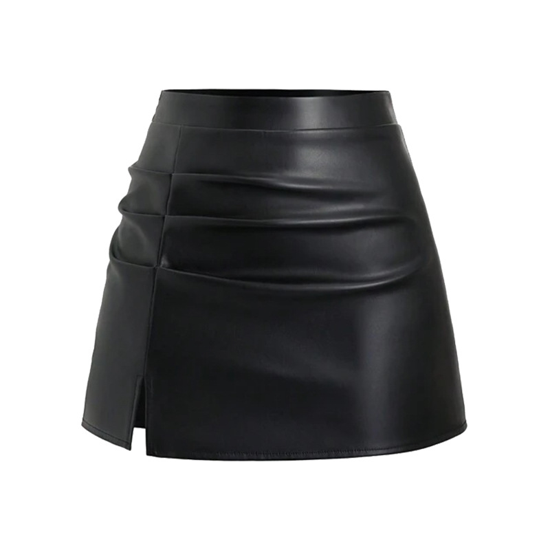 跨境电商女装PU皮短裙欧美外贸女式PU开叉包臀皮裙跨境电商货源现